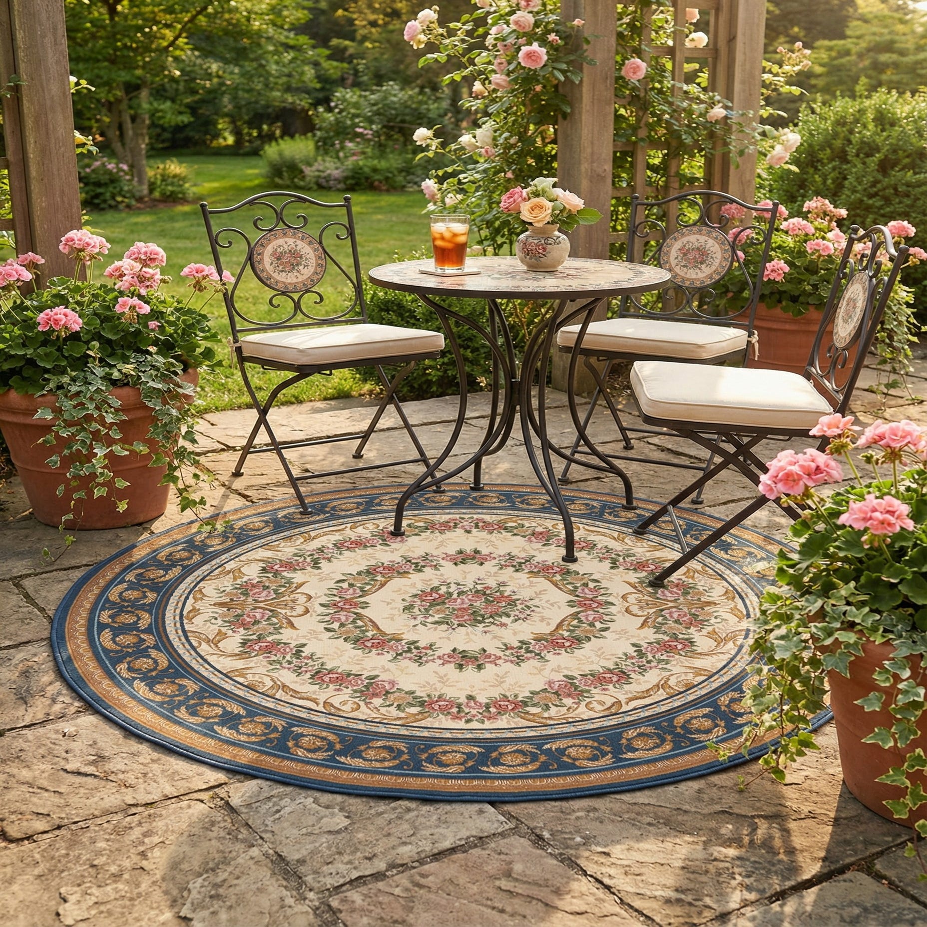 Primary image 7' 10 x 7' 10  Washable Traditional Indoor / Outdoor Round Rug