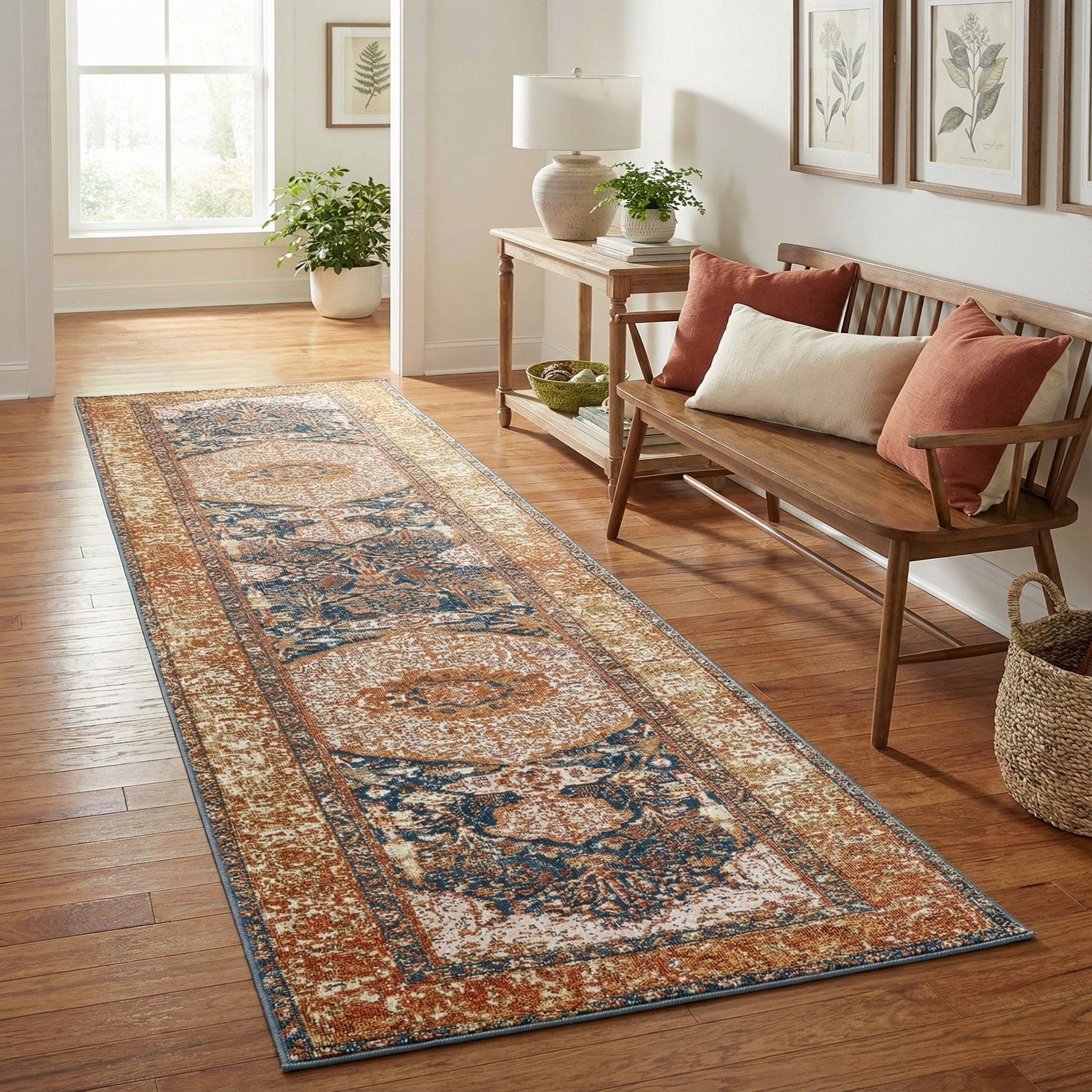 2' 7 x 10' Washable Traditional Indoor / Outdoor Runner Rug