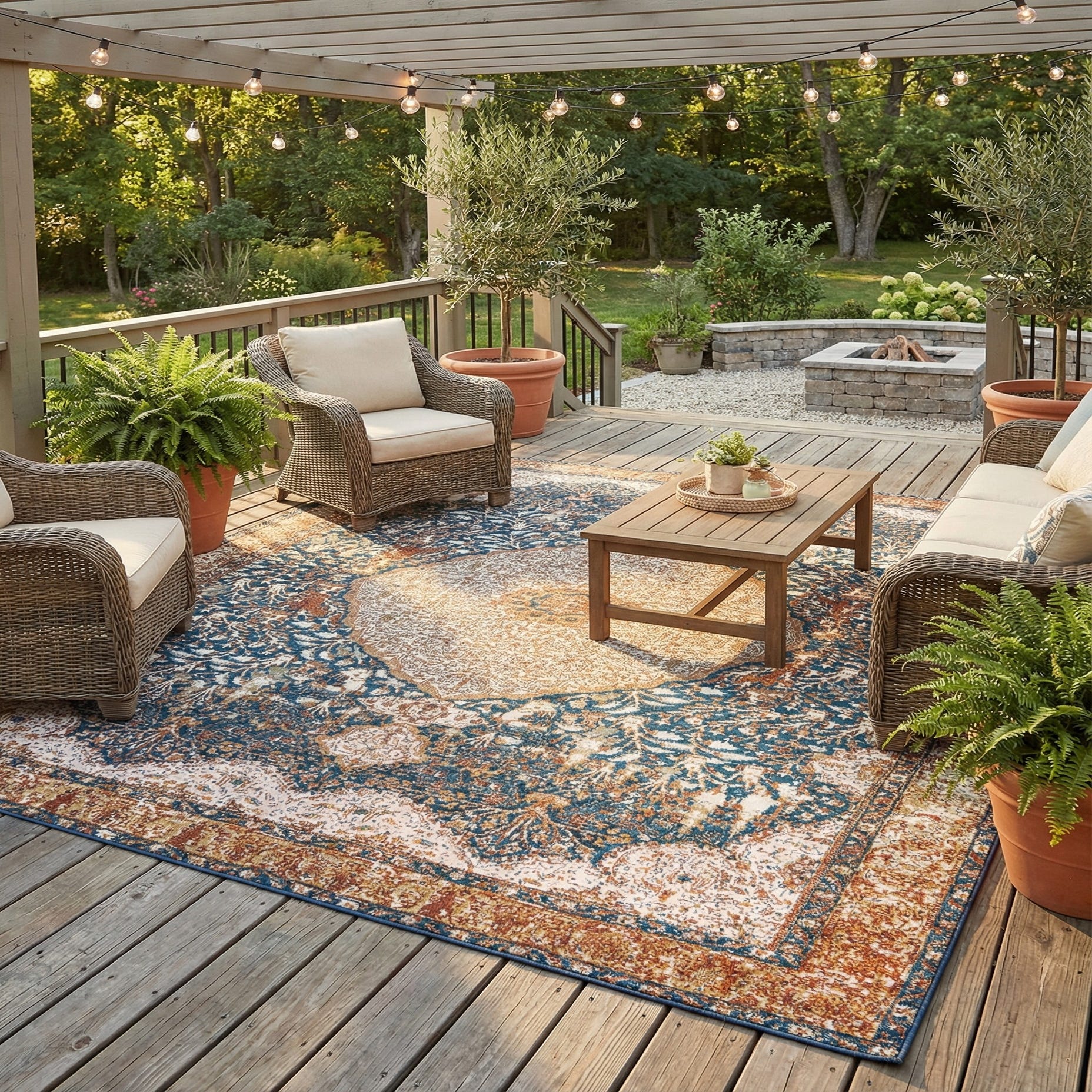 Detail image of 10' x 10'  Washable Traditional Indoor / Outdoor Square Rug