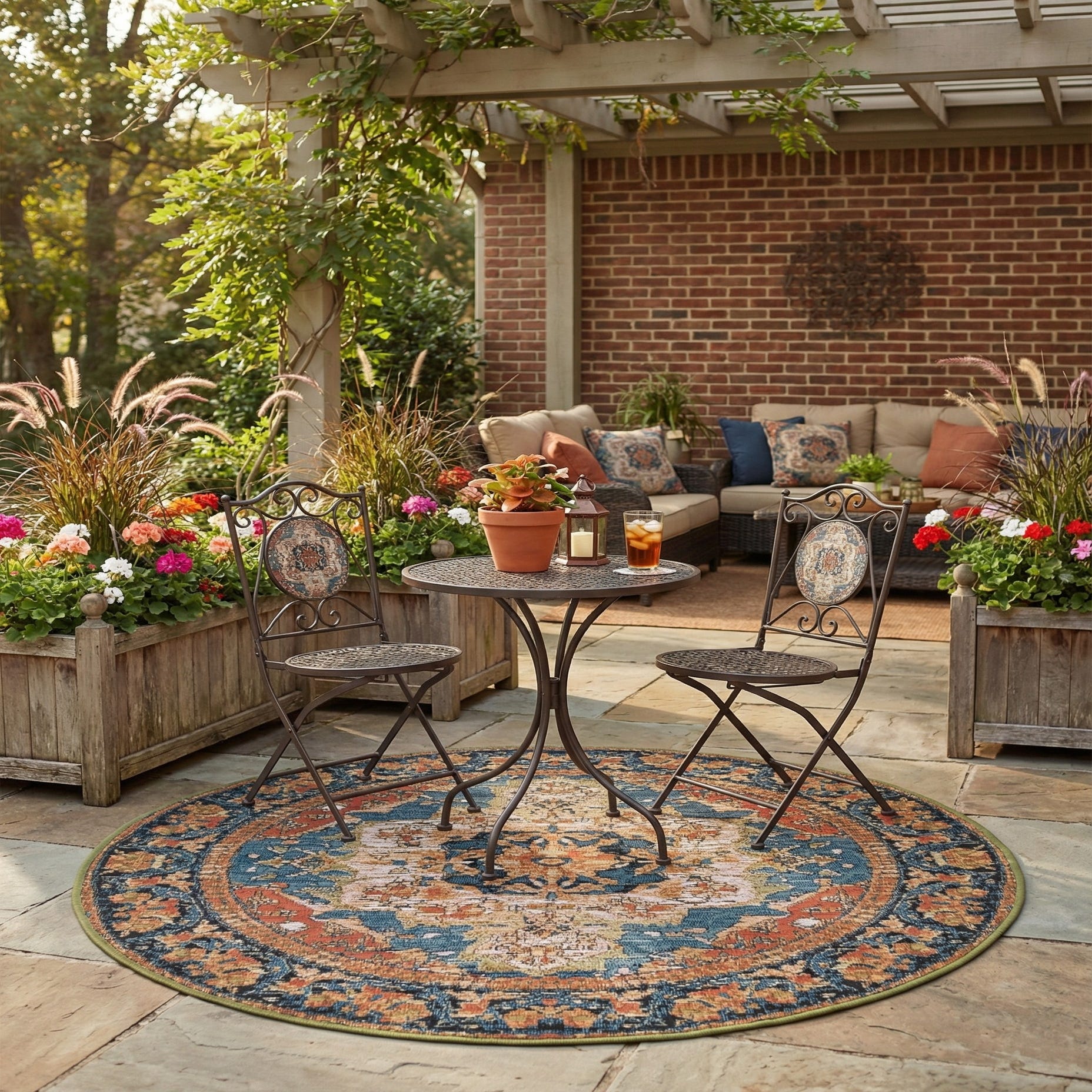 3' x 3' Washable Traditional Indoor / Outdoor Round Rug