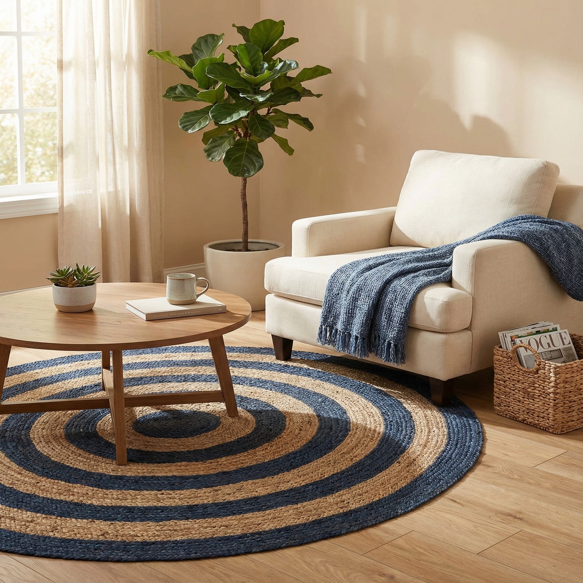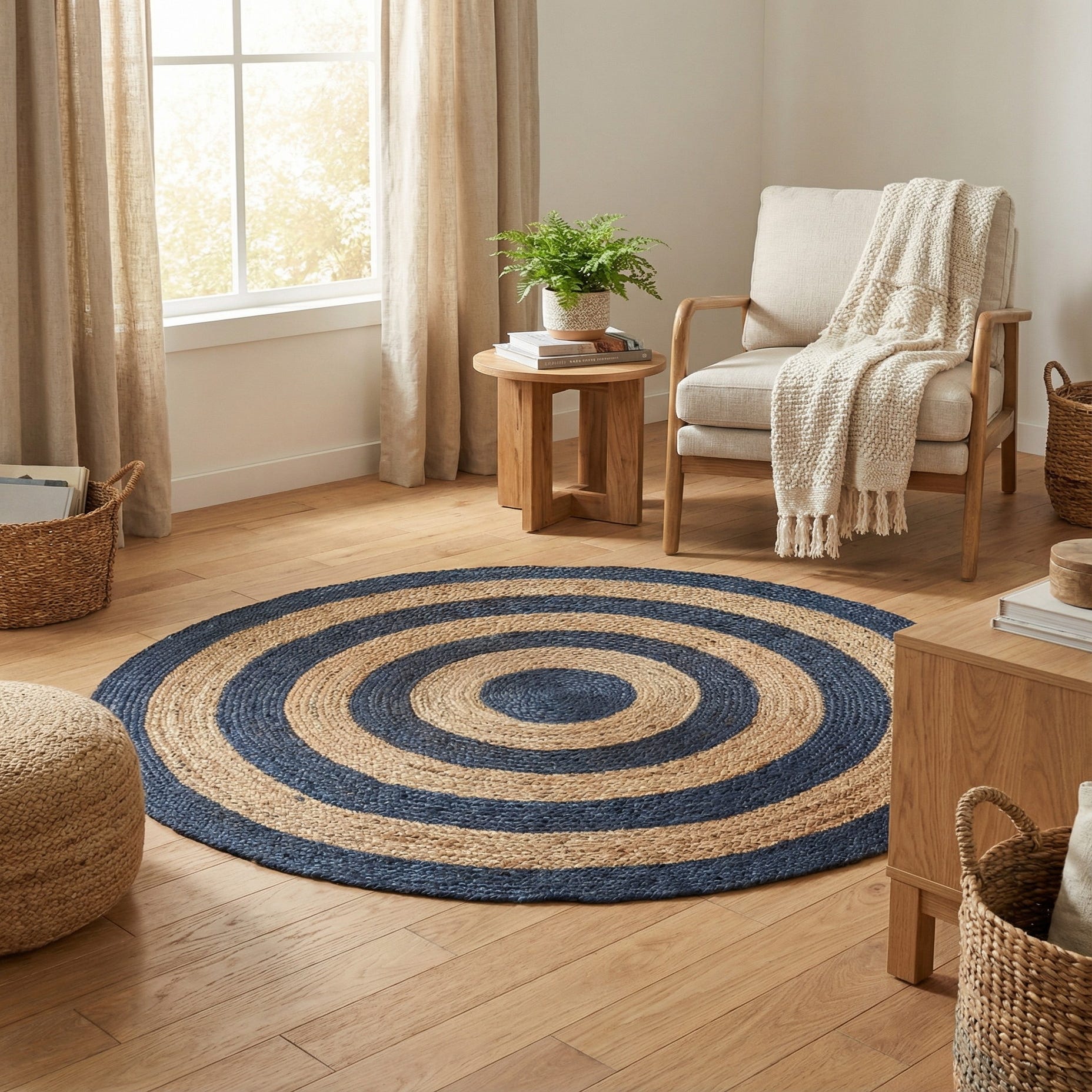 5' 1 x 5' 1 Hand Braided Jute Round Rug