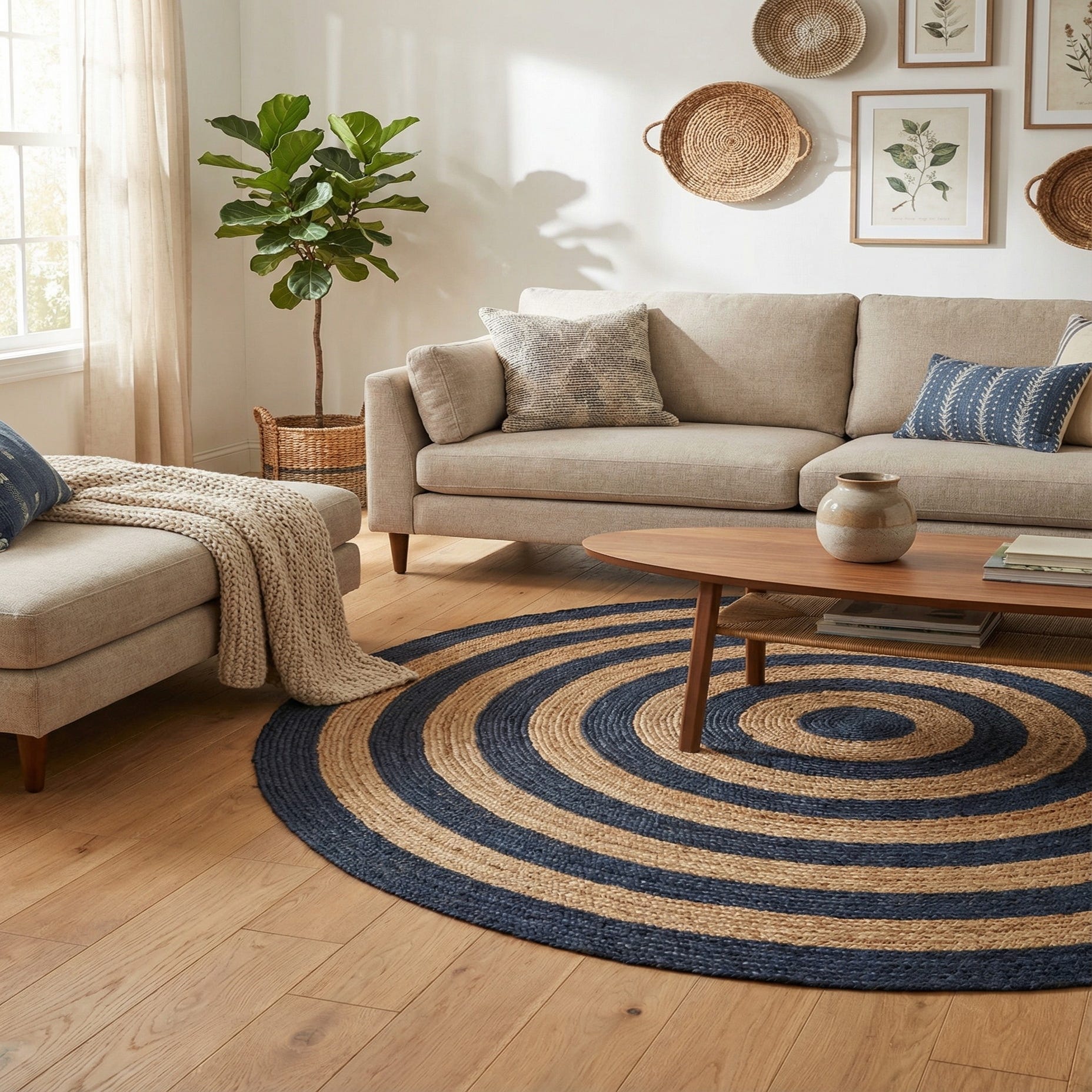 7' 1 x 7' 1 Hand Braided Jute Round Rug
