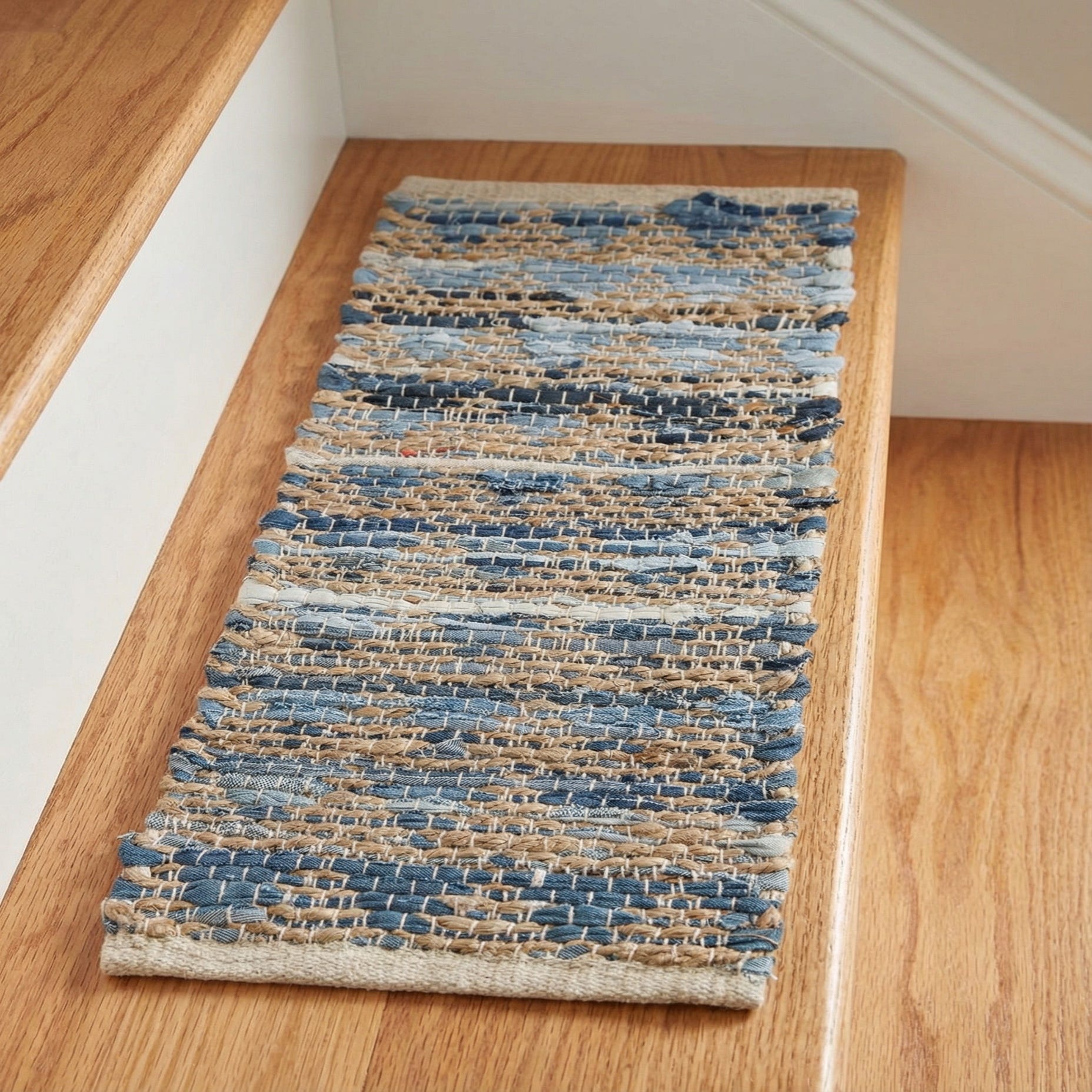 0' 9 x 2' 6 Hand Woven Chindi Jute Stair Rug