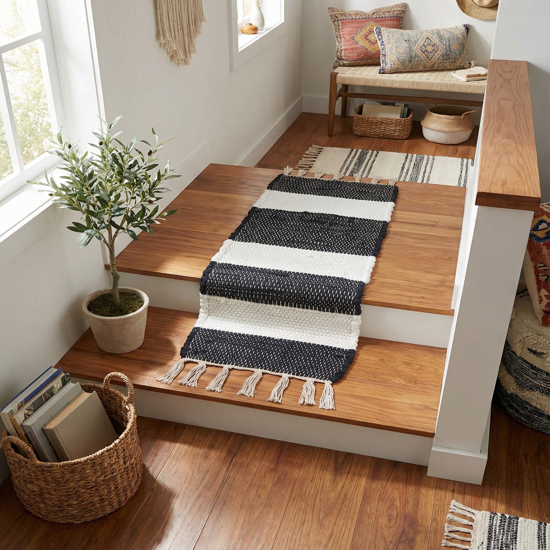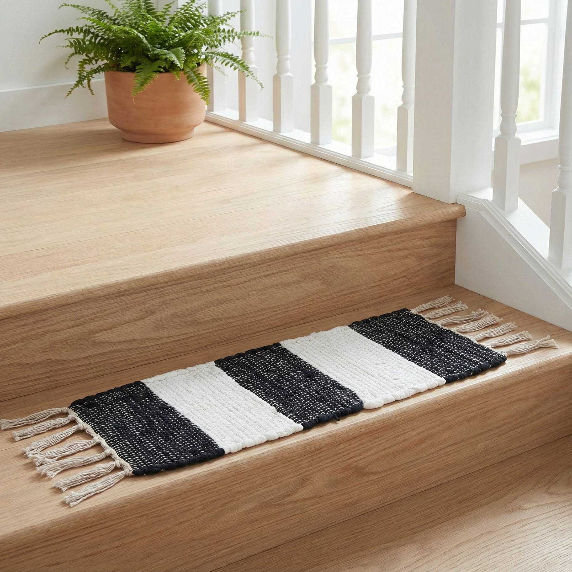 0' 9 x 2' 6 Hand Woven Chindi Rag Stair Rug