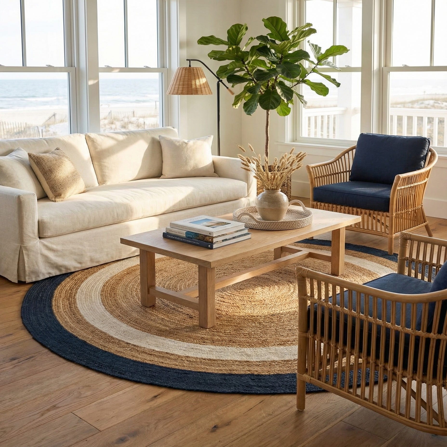 Primary color is Navy Blue White Natural. Colors in this rug include: Navy Blue White Natural, Natural.