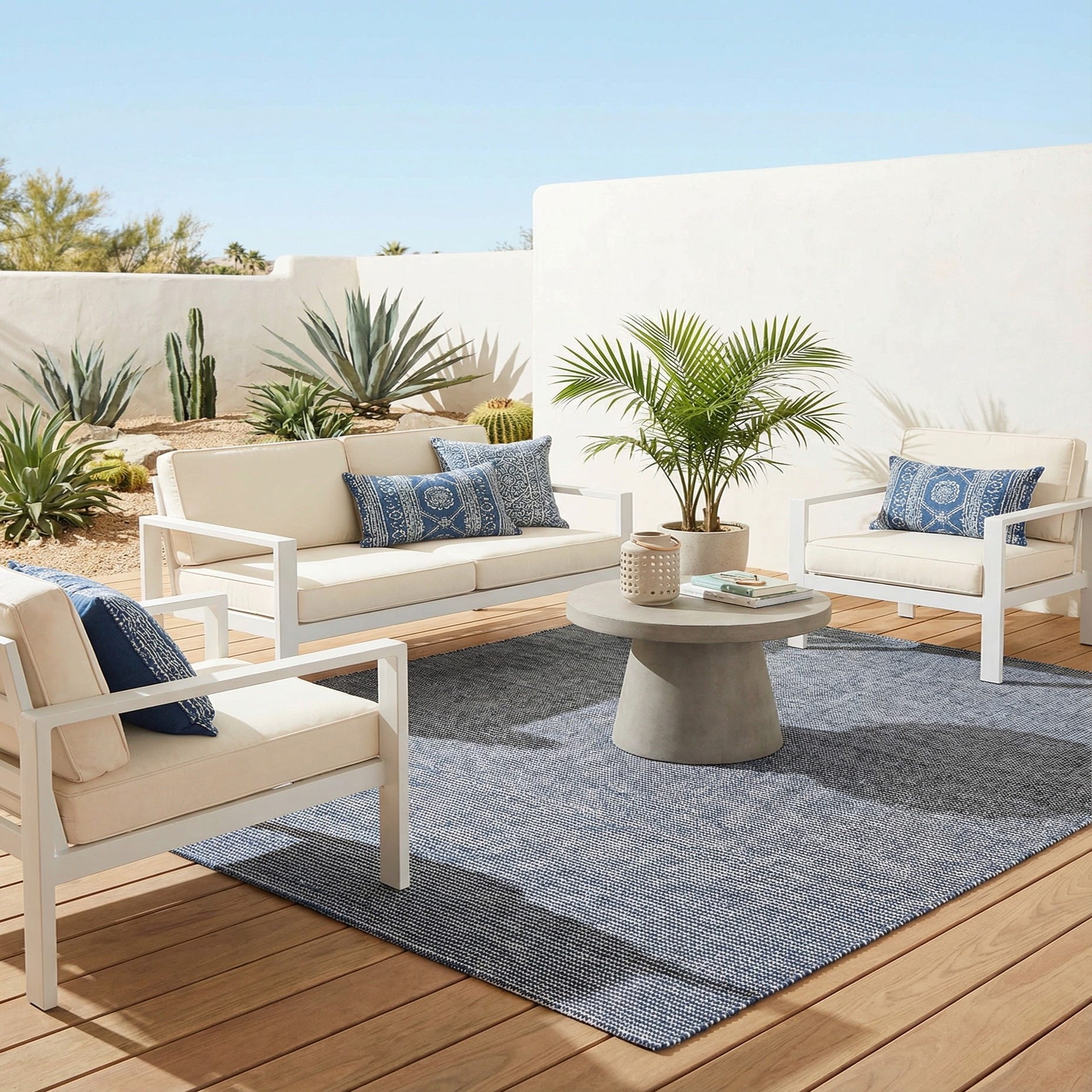 Primary color is Navy Sky. Colors in this rug include: Navy Sky, Ivory.
