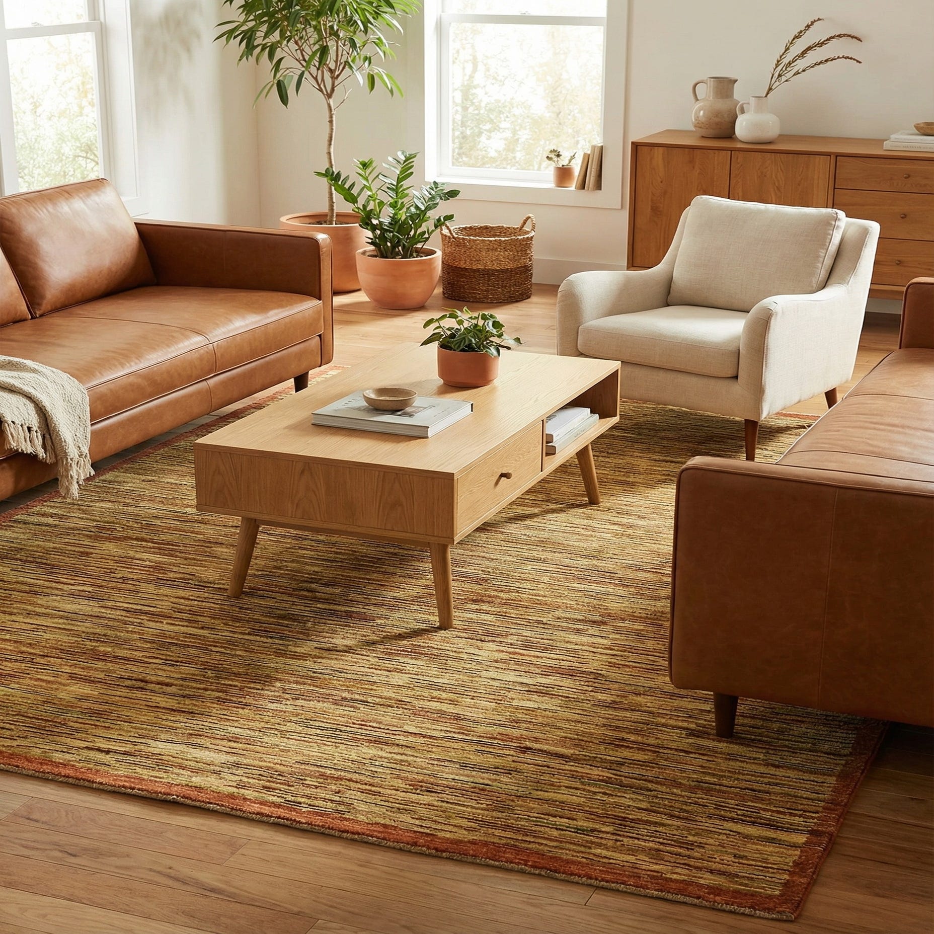 Primary color is Olive. Colors in this rug include: Olive, Beige, Brown, Red.