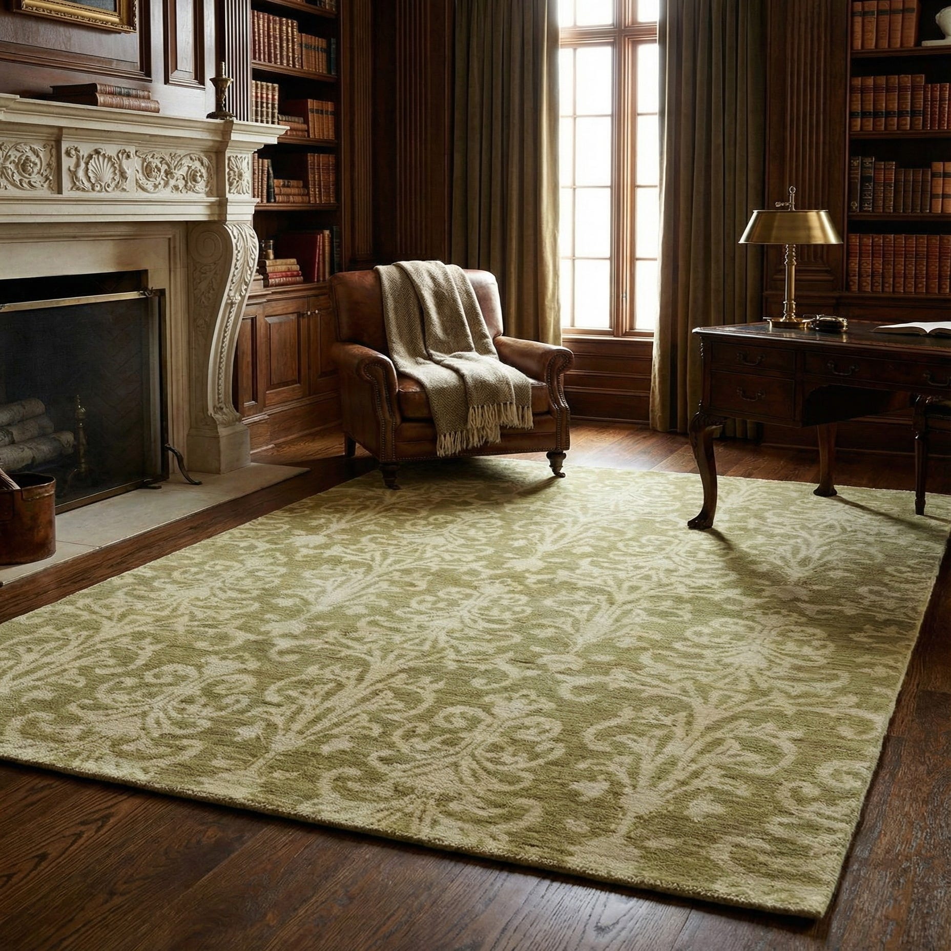 Primary color is Olive. Colors in this rug include: Olive, Beige.