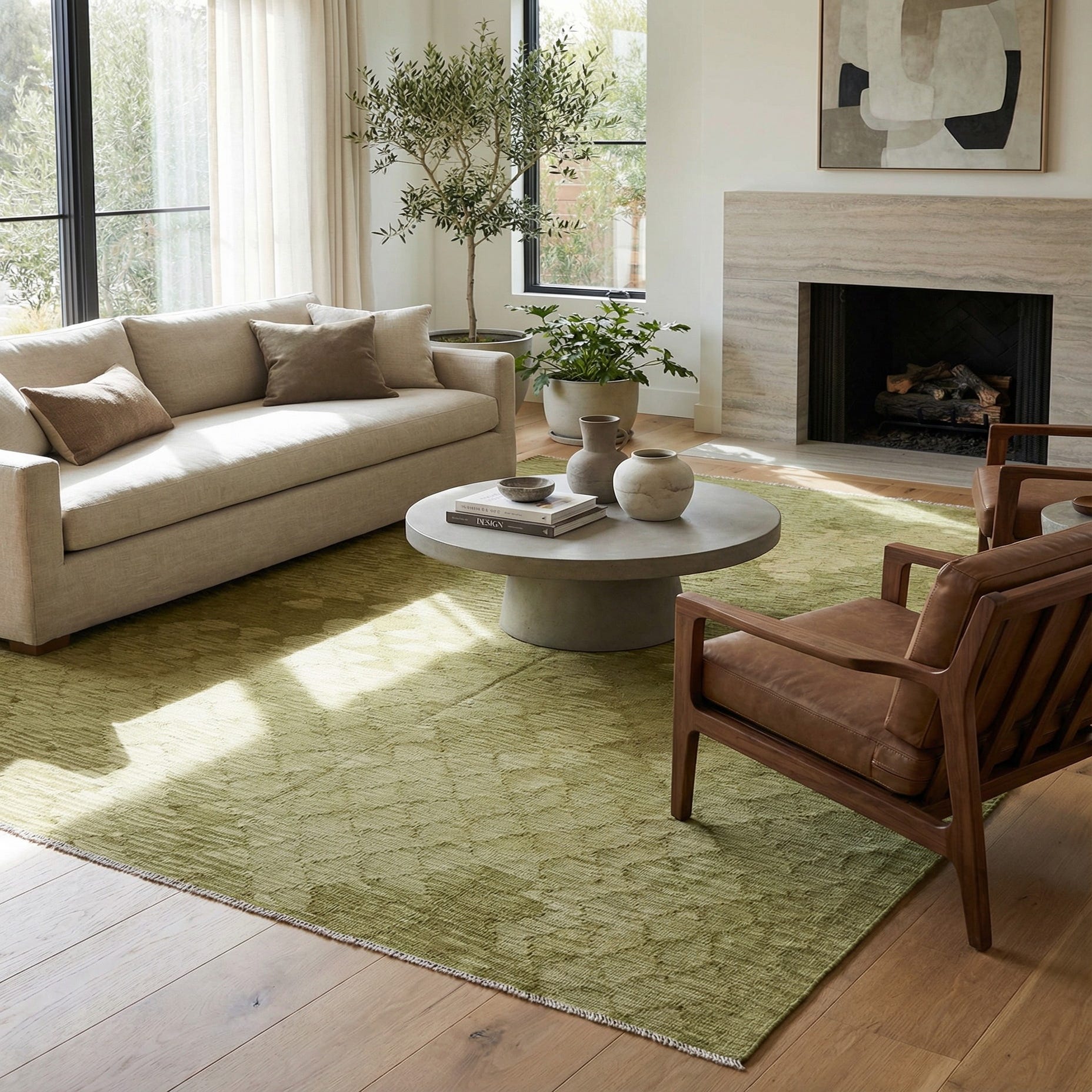 Primary color is Olive. Colors in this rug include: Olive, Light Green.
