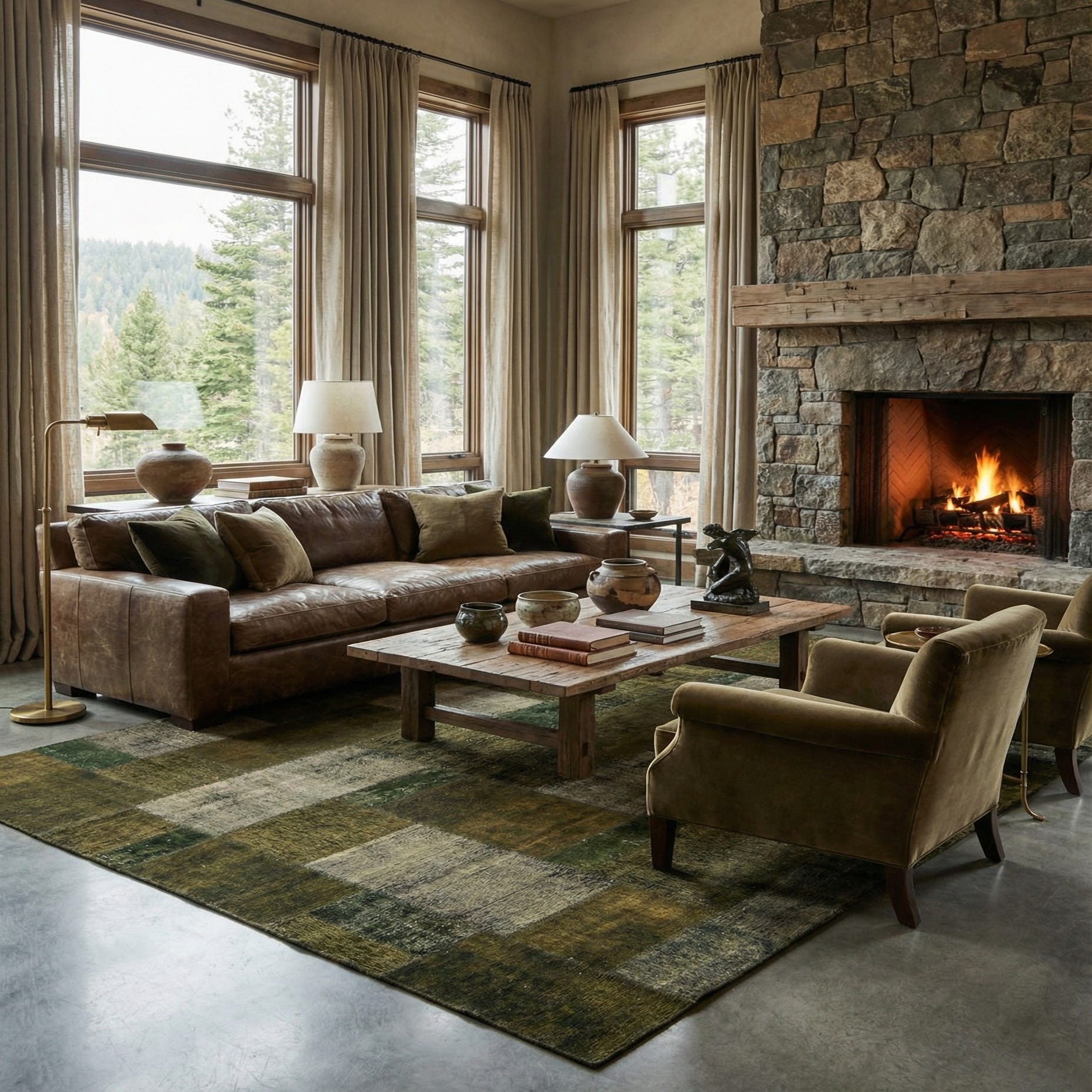 Primary color is Olive. Colors in this rug include: Olive, Hunter Green, Beige, Black, Ivory.
