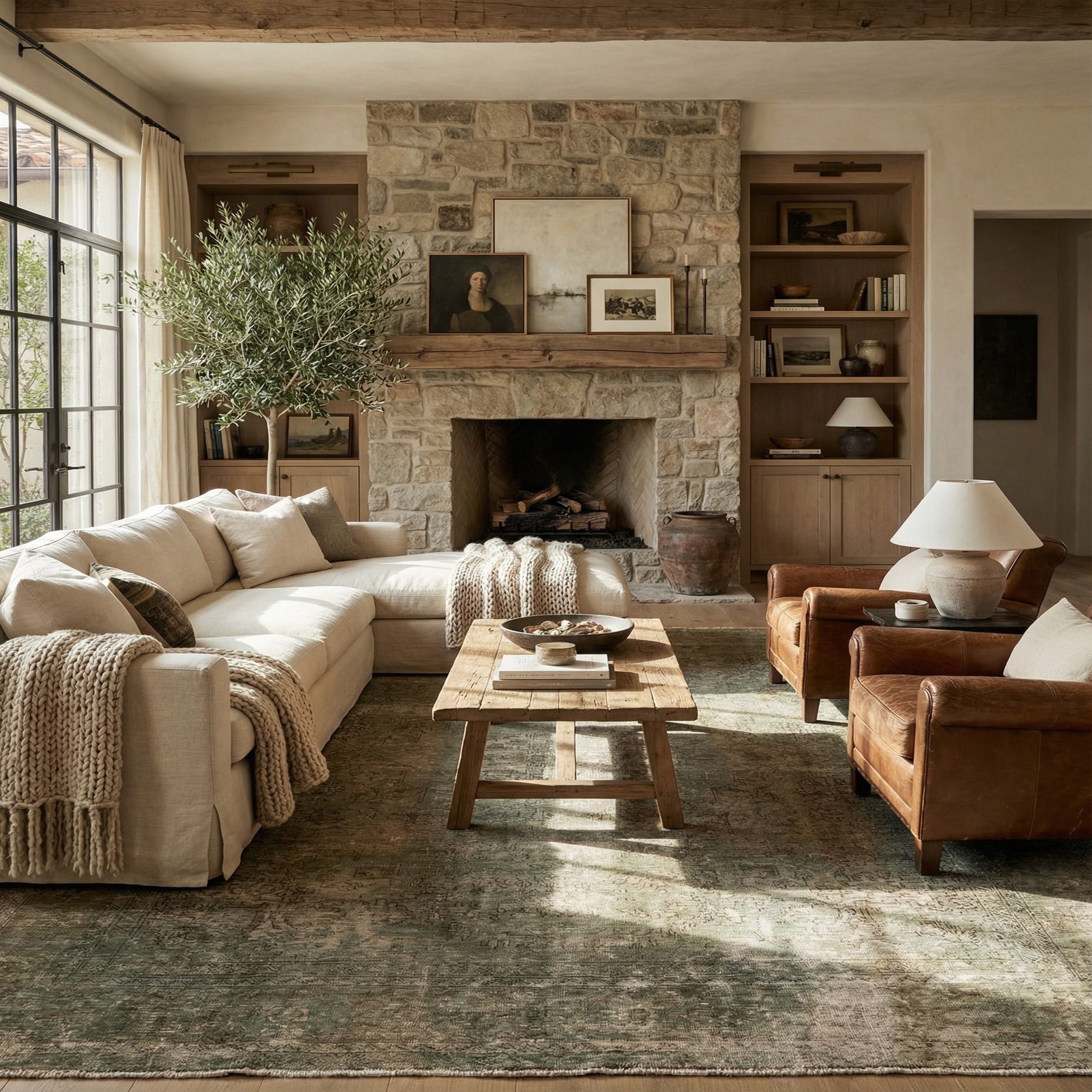 Primary color is Olive. Colors in this rug include: Olive, Black, Brown, Beige.