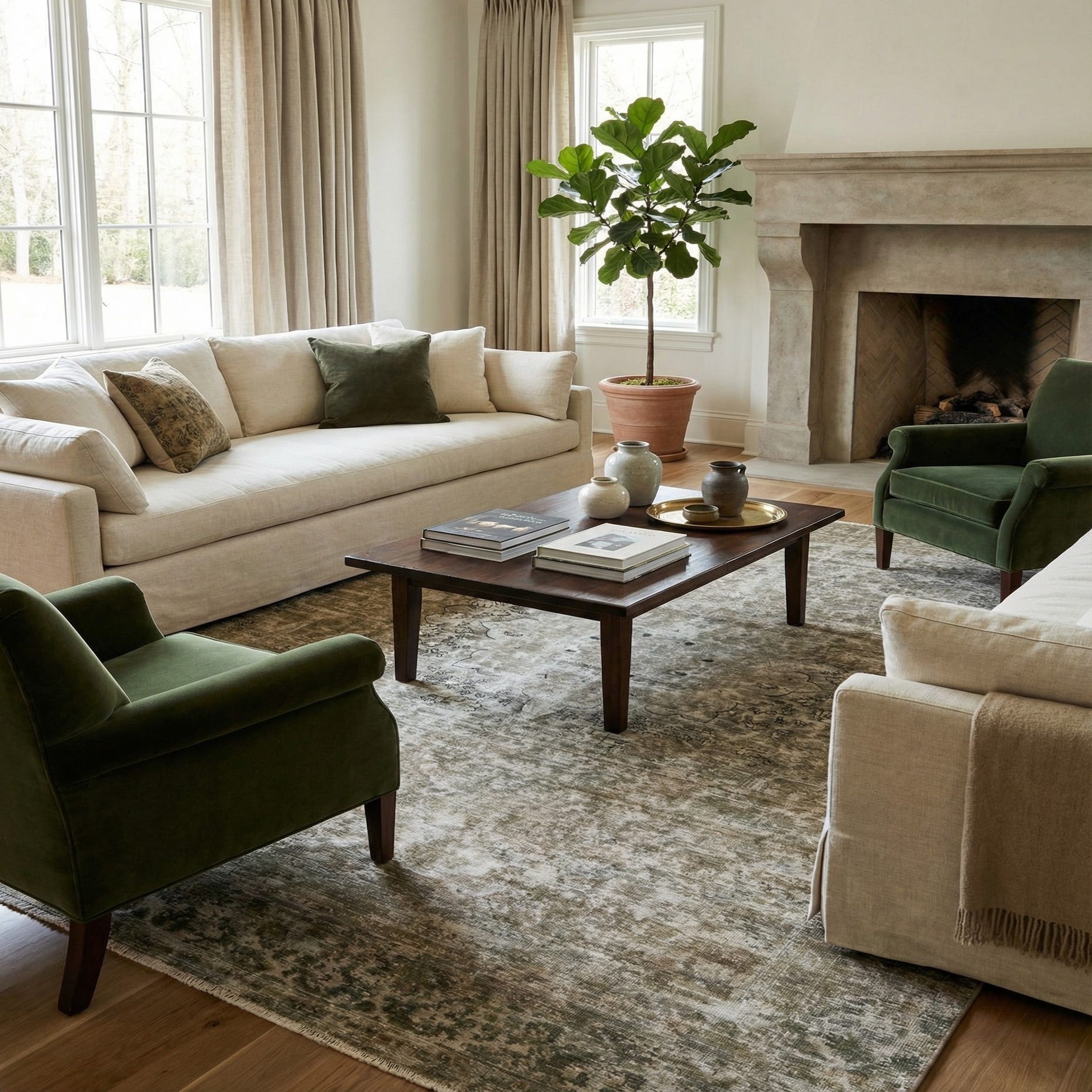 Primary color is Olive. Colors in this rug include: Olive, Black, Ivory.