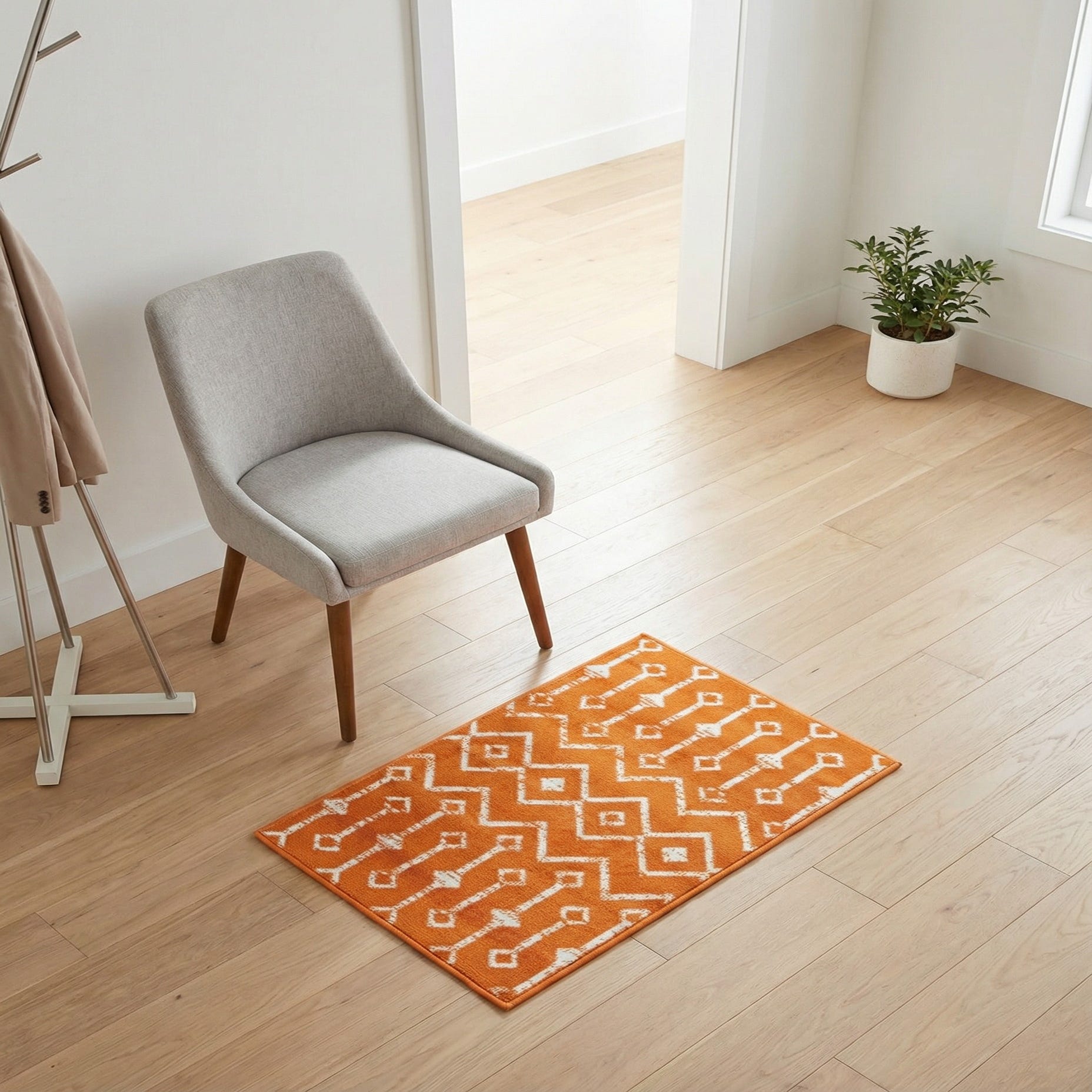 Primary color is Orange. Colors in this rug include: Orange, Ivory.