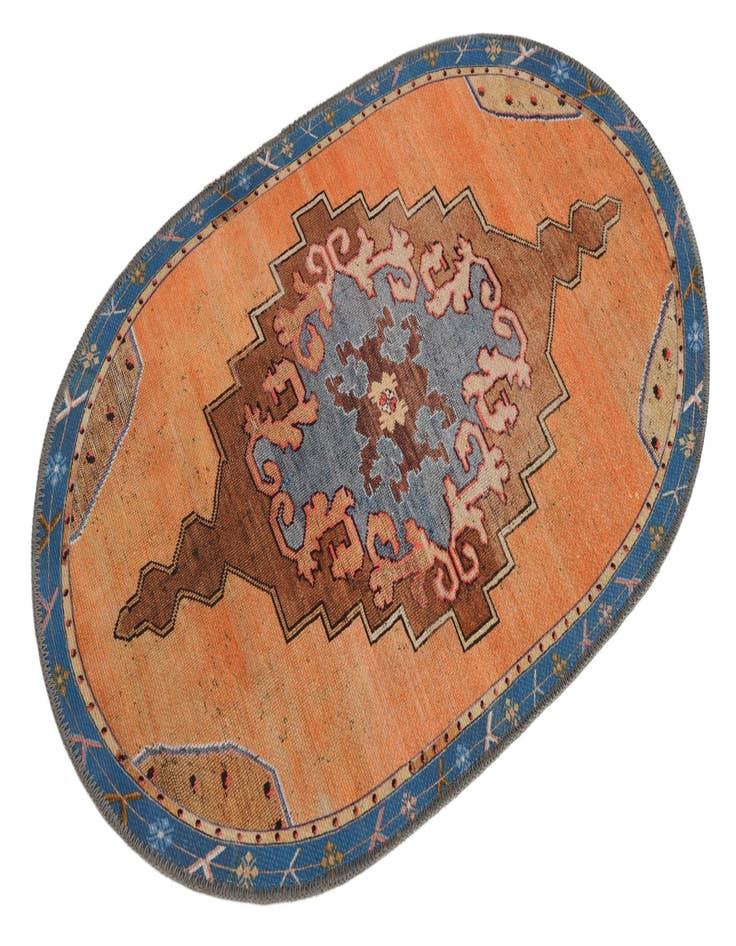 Primary color is Orange. Colors in this rug include: Orange, Beige, Black, Brown, Ivory, Red, Navy Blue, Blue.