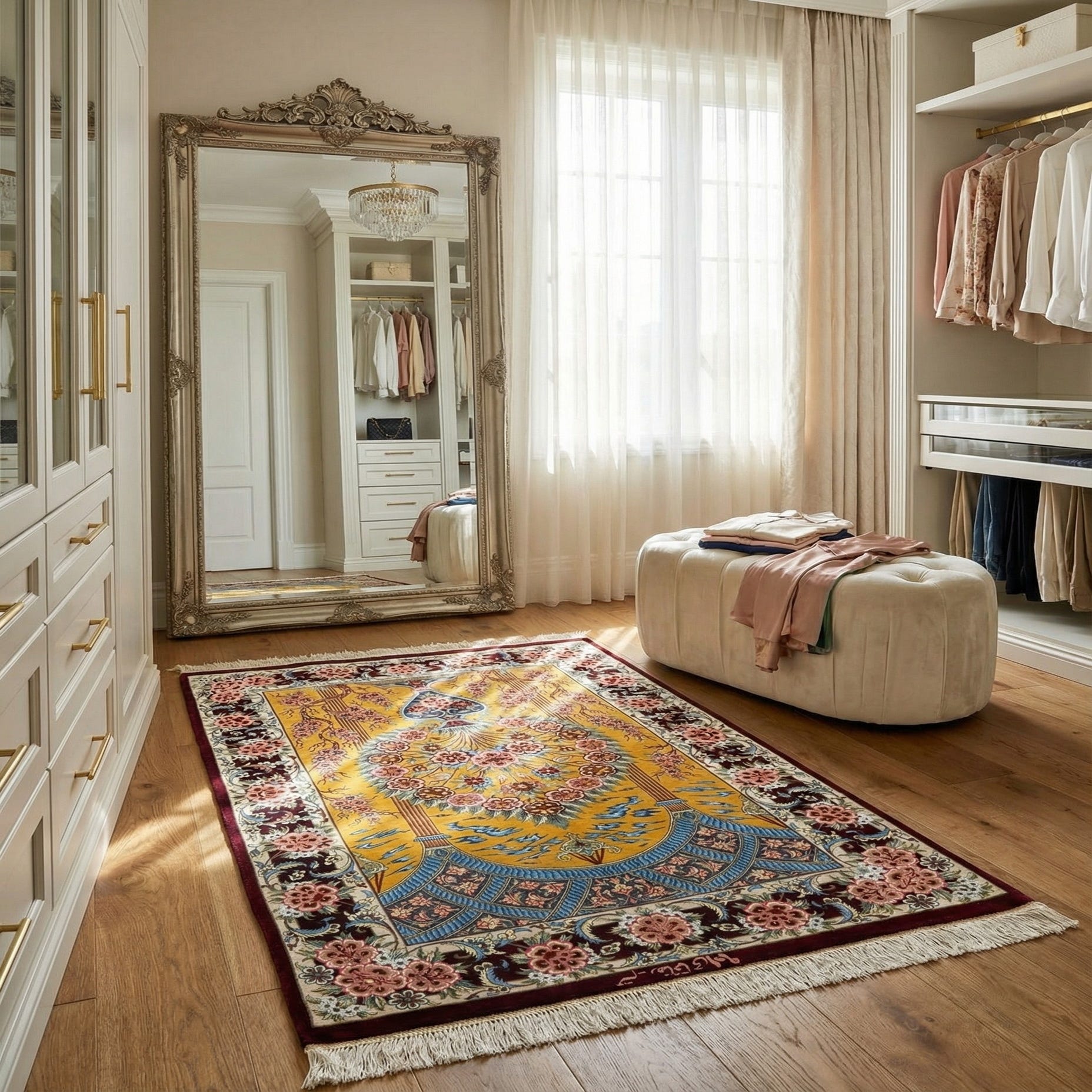 Primary image 2' 7 x 3' 10 Ghom Silk Rug