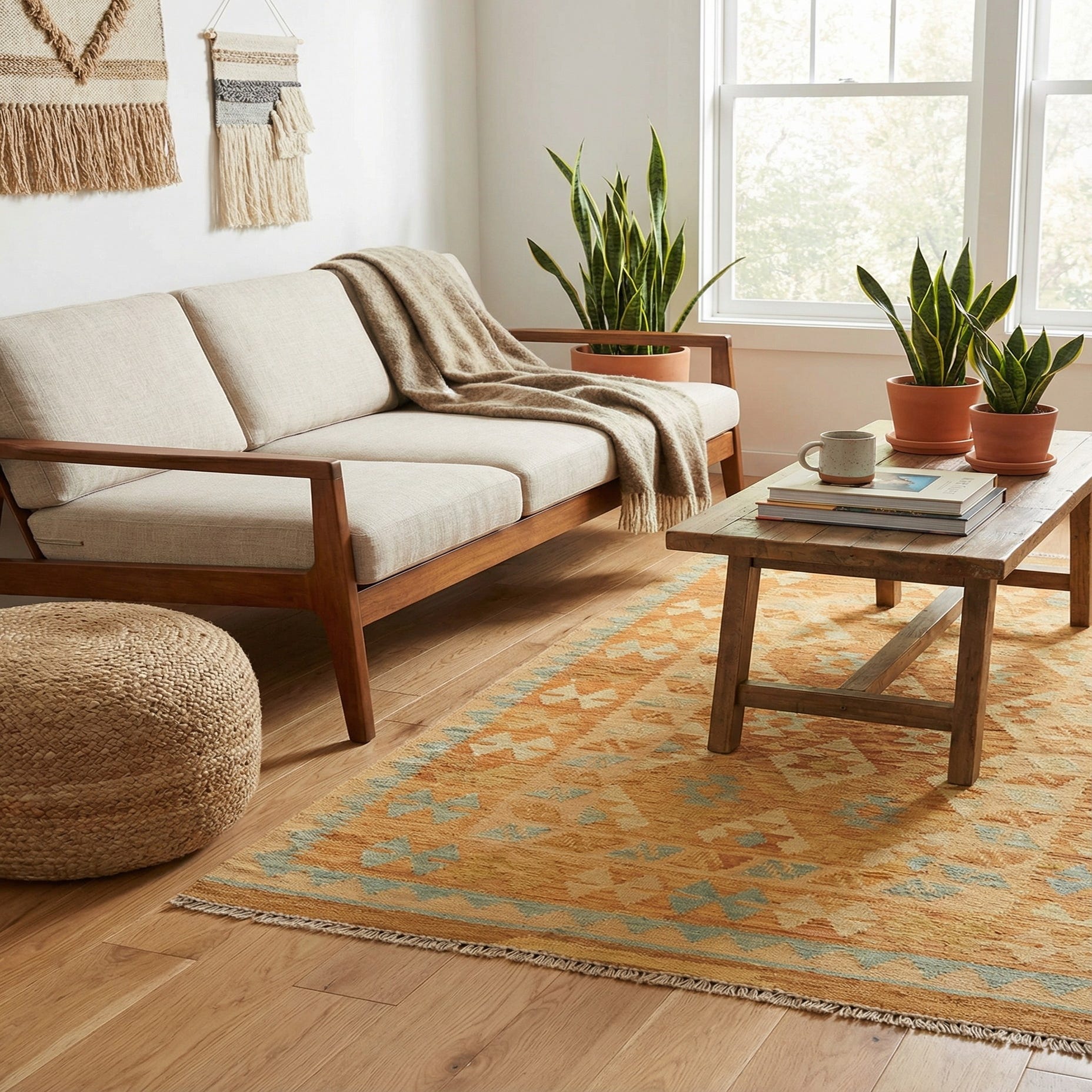 2' 10 x 4' 2 Hand Woven Kilim Waziri Wool Rug