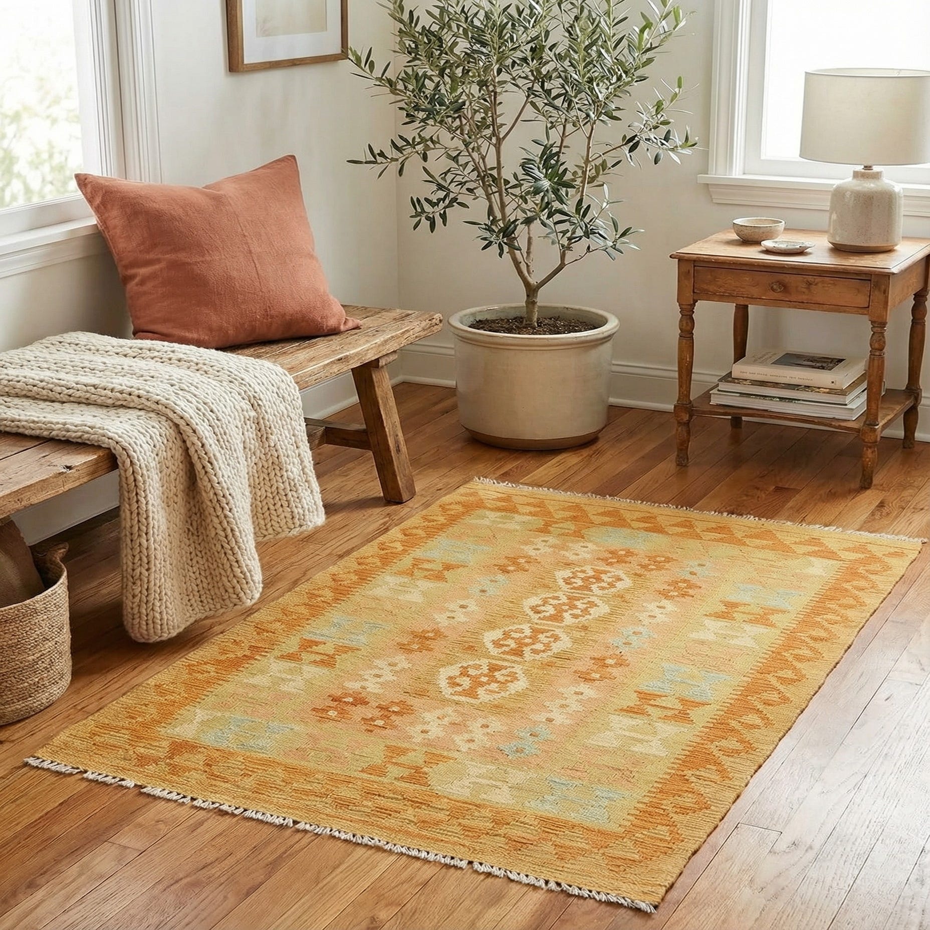 2' 9 x 4' 4 Hand Woven Kilim Waziri Wool Rug