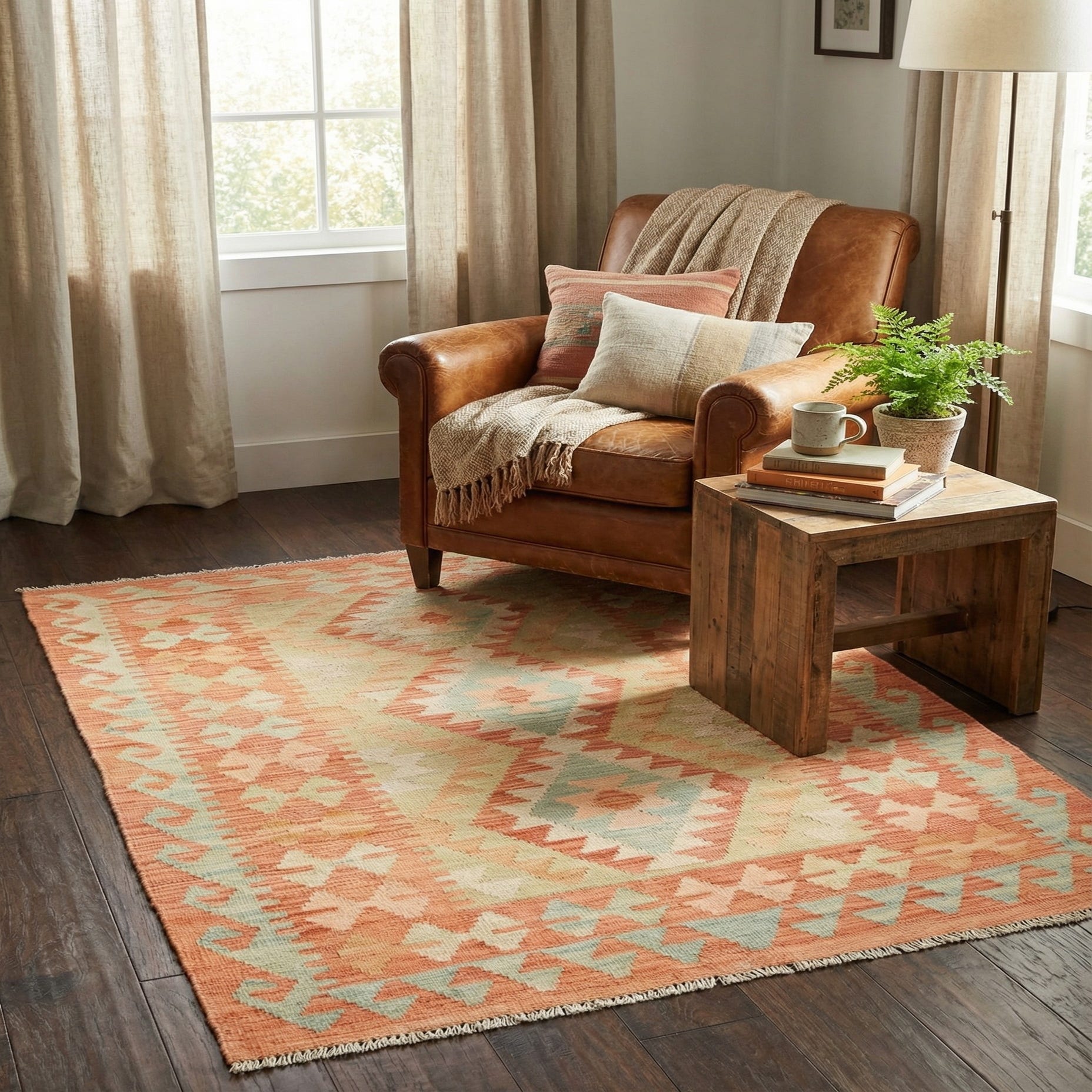 2' 9 x 4' 2 Hand Woven Kilim Waziri Wool Rug