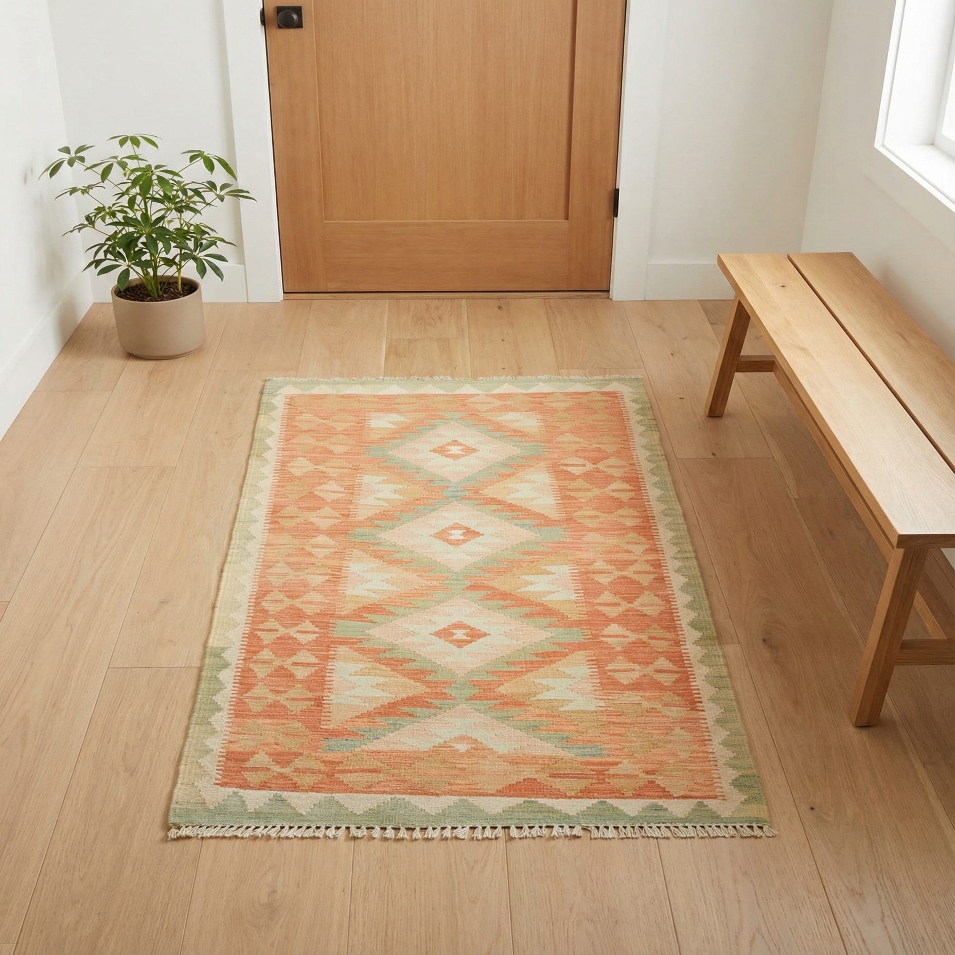 2' 6 x 4' 2 Hand Woven Kilim Waziri Wool Rug