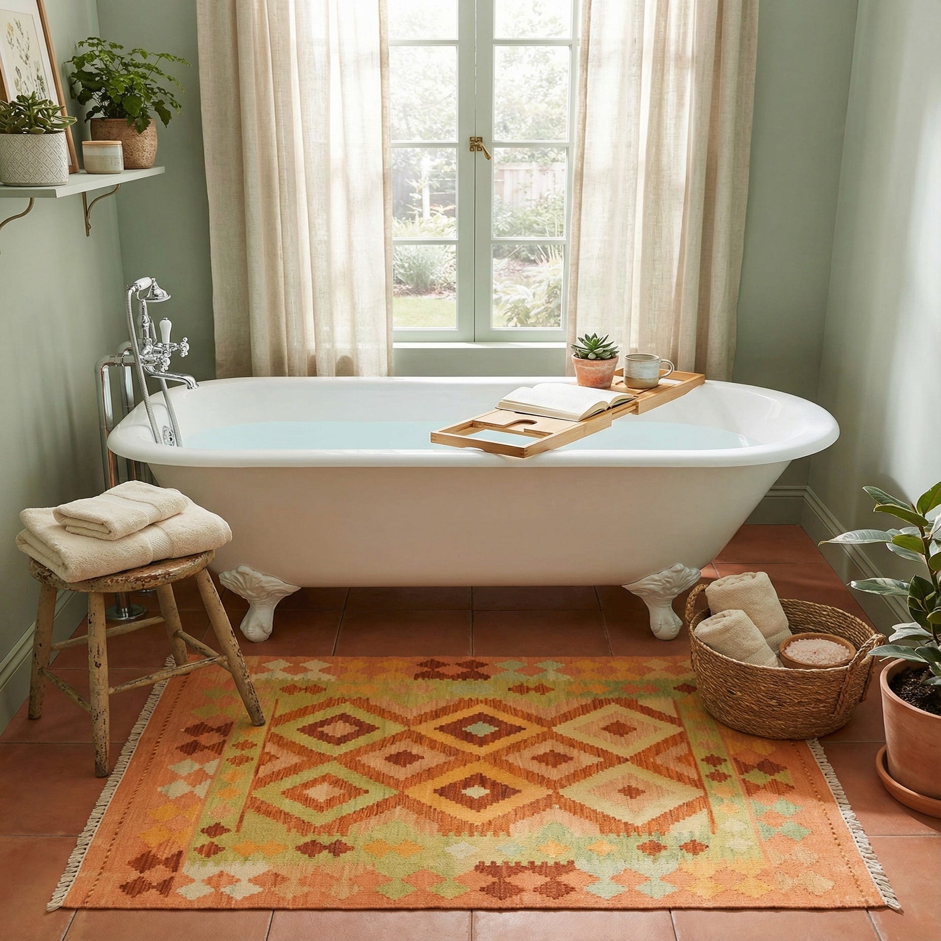 3' 2 x 4' 10 Hand Woven Kilim Waziri Wool Rug