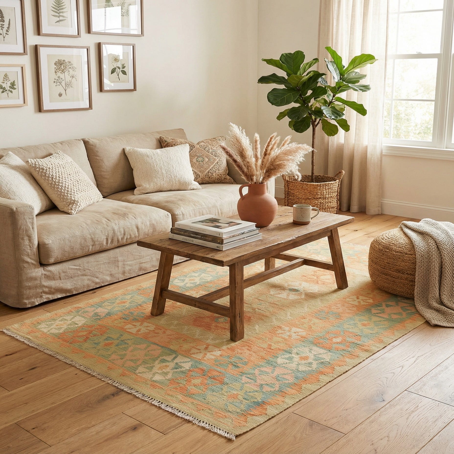 3' x 5' Hand Woven Kilim Waziri Wool Rug