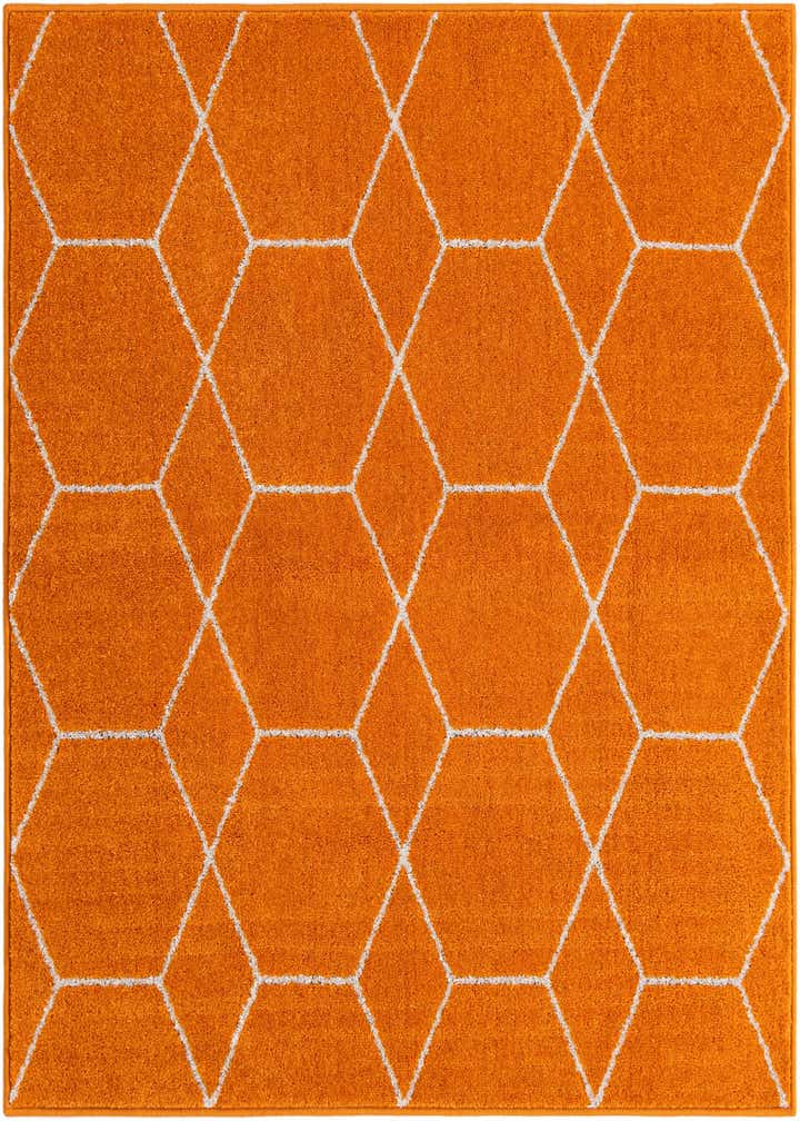 Primary color is Orange. Colors in this rug include: Orange, Ivory.
