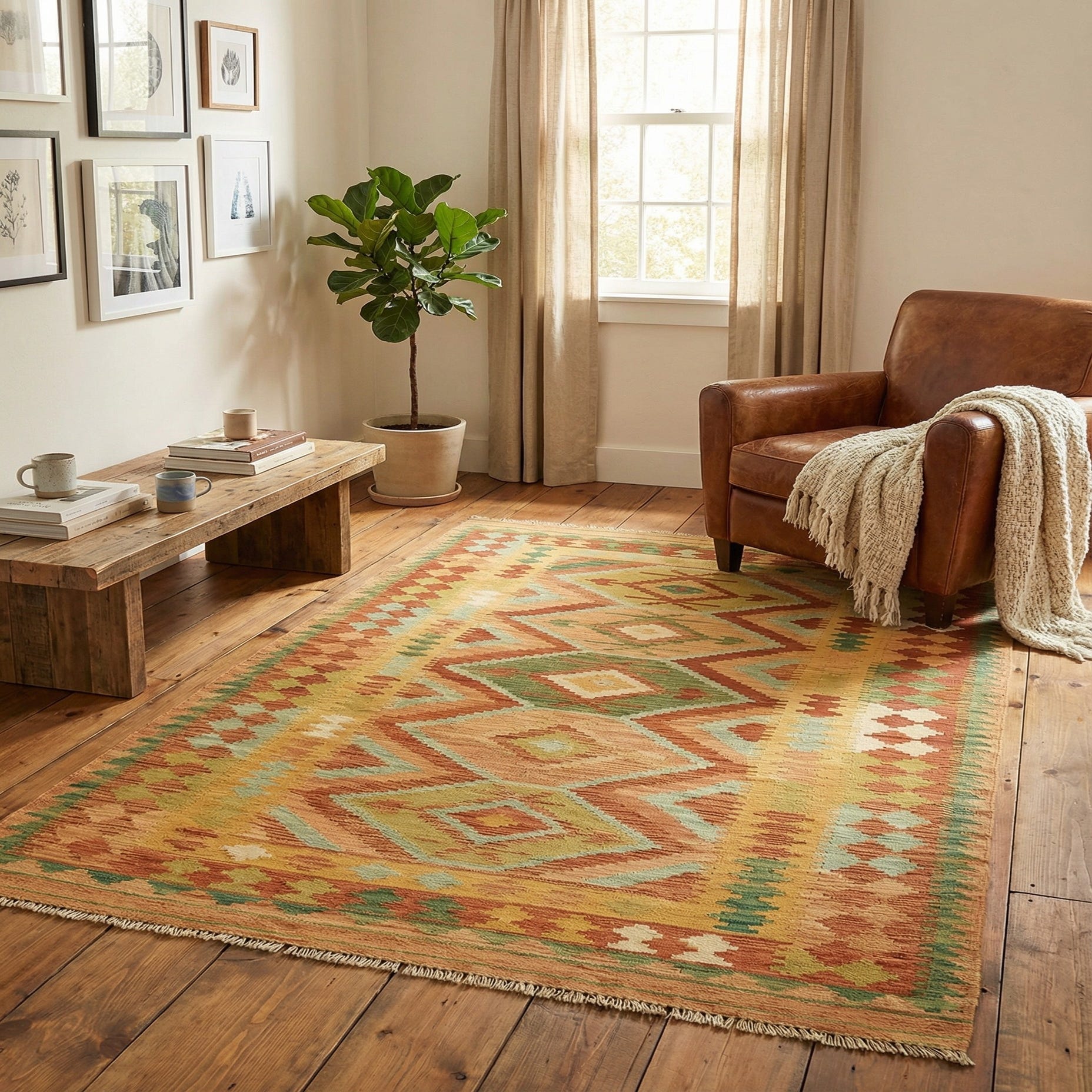 3' 8 x 6' 3 Hand Woven Kilim Waziri Wool Rug