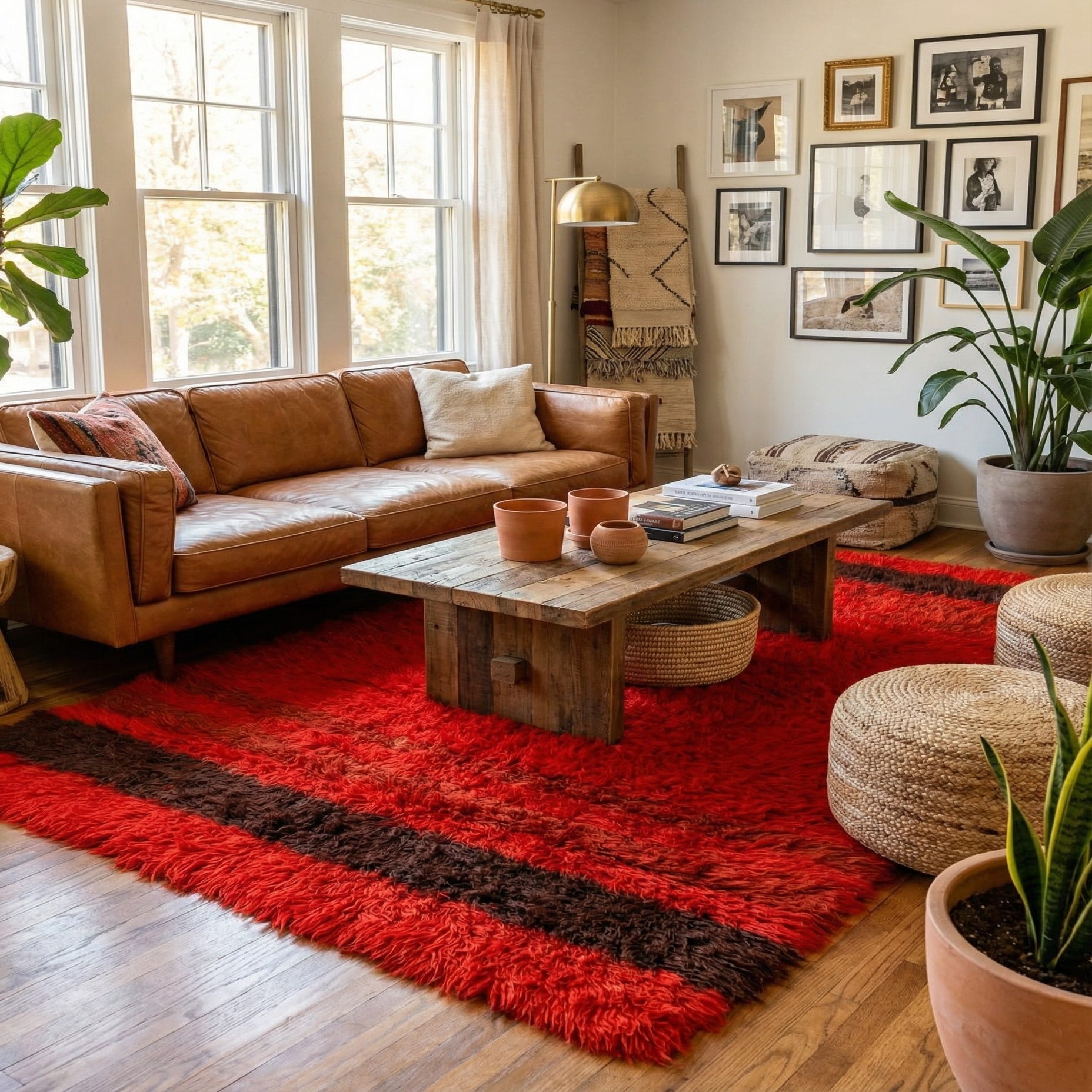 Primary color is Orange. Colors in this rug include: Orange, Brown.