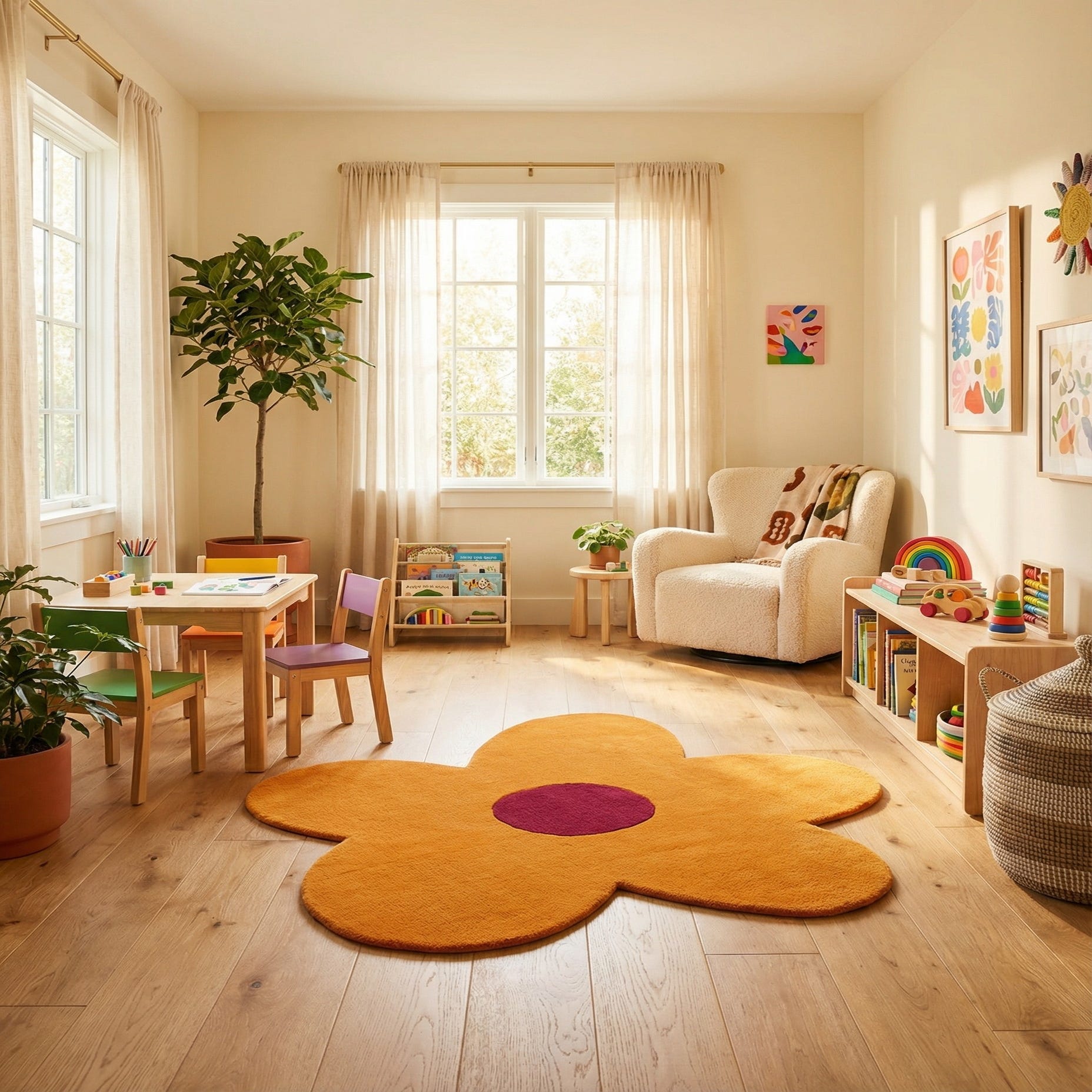 Primary image 5' 1 x 5' 1 Happy Rugs Funky Flower Wool Round
