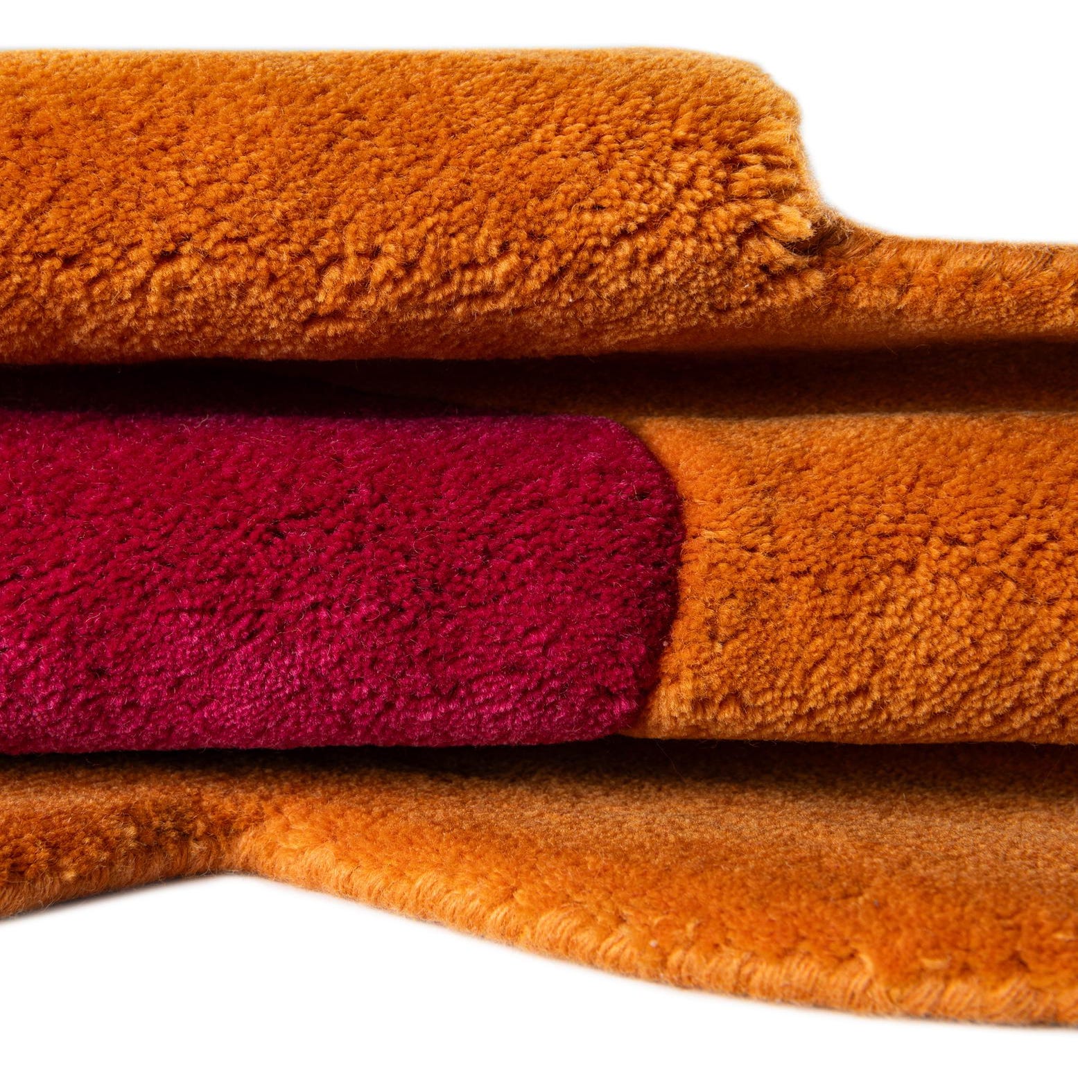 Primary color is Orange. Colors in this rug include: Orange, Red.
