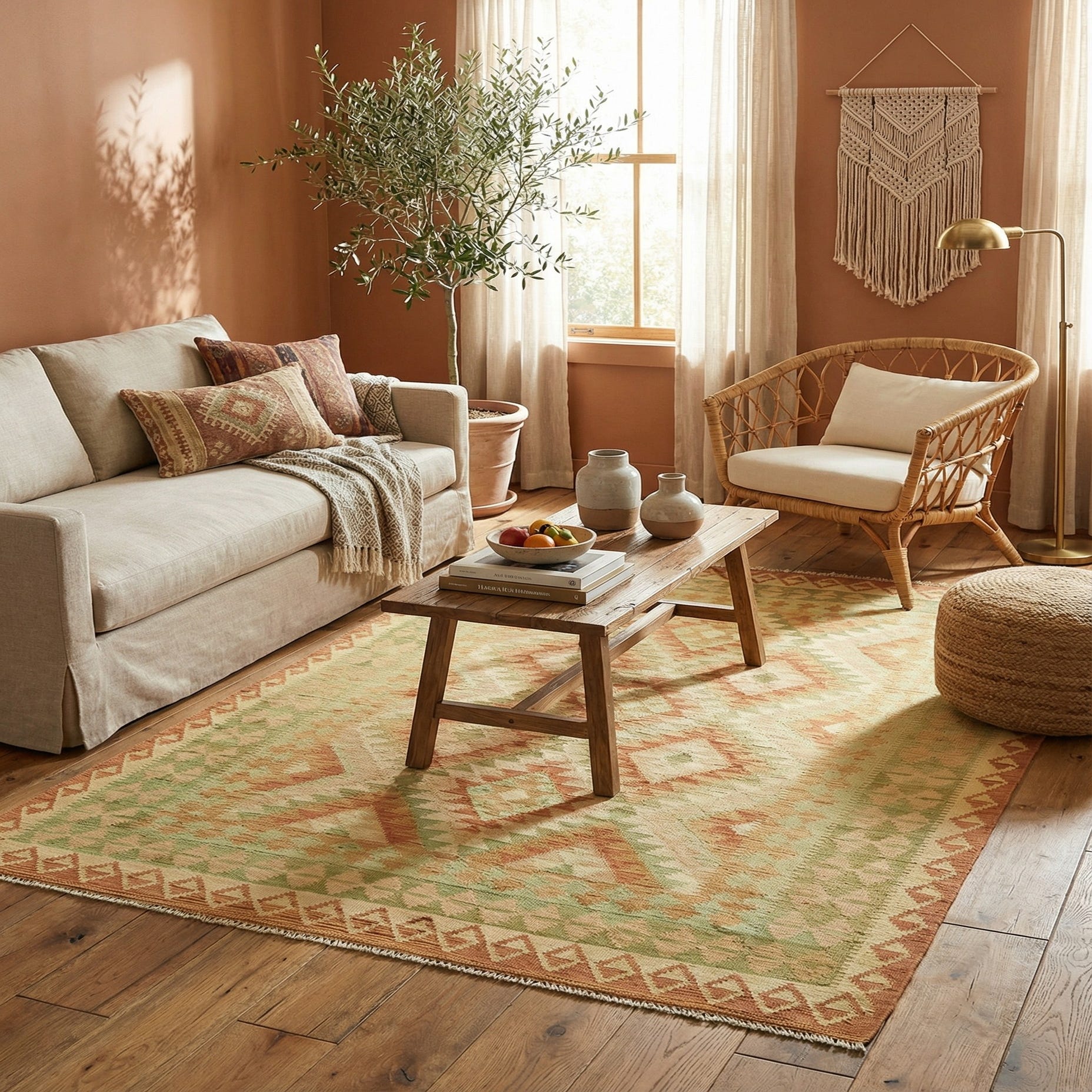 Detail image of 4' 10 x 6' 8  Hand Woven Kilim Waziri Wool Rug