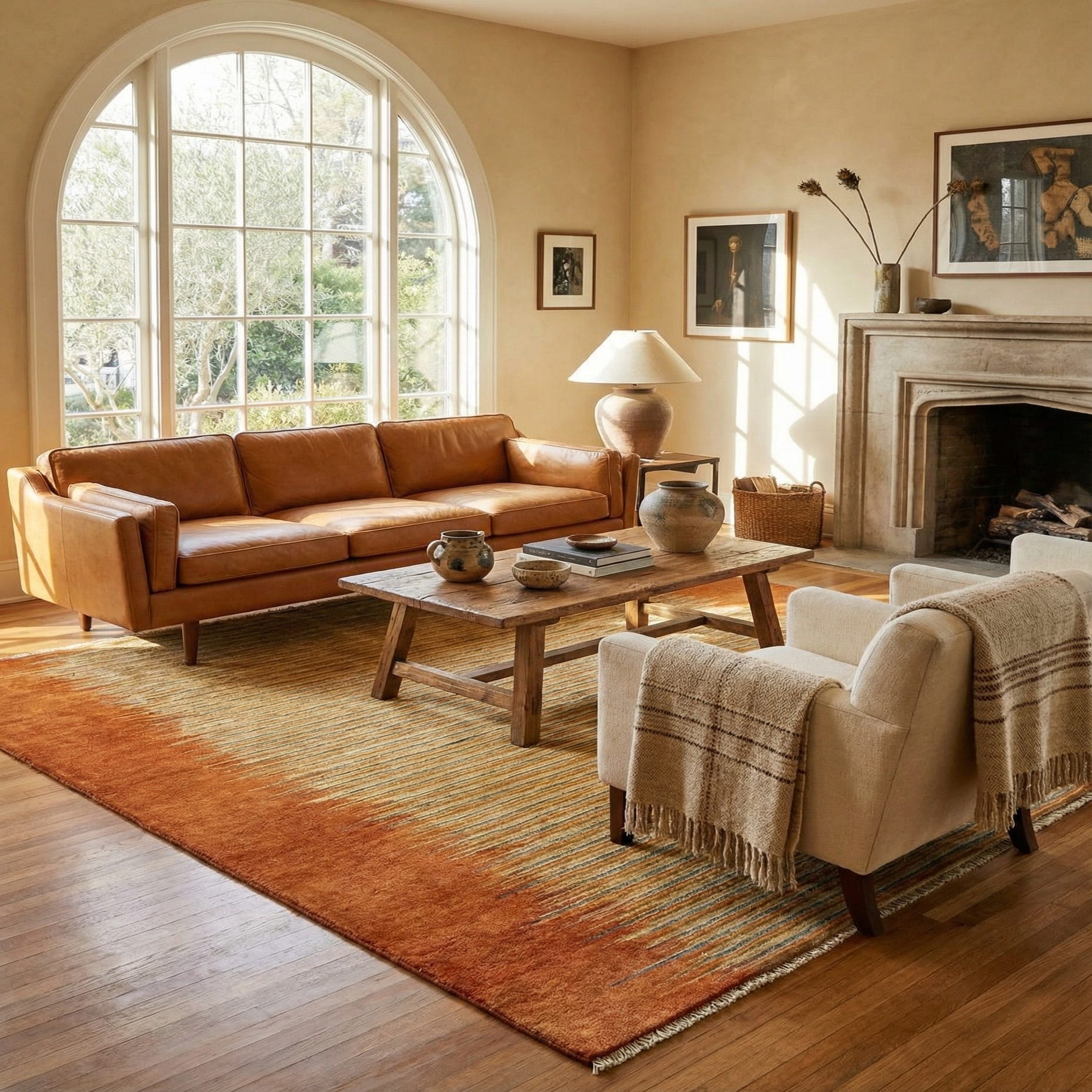 Primary color is Orange. Colors in this rug include: Orange, Orange, Multicolor.