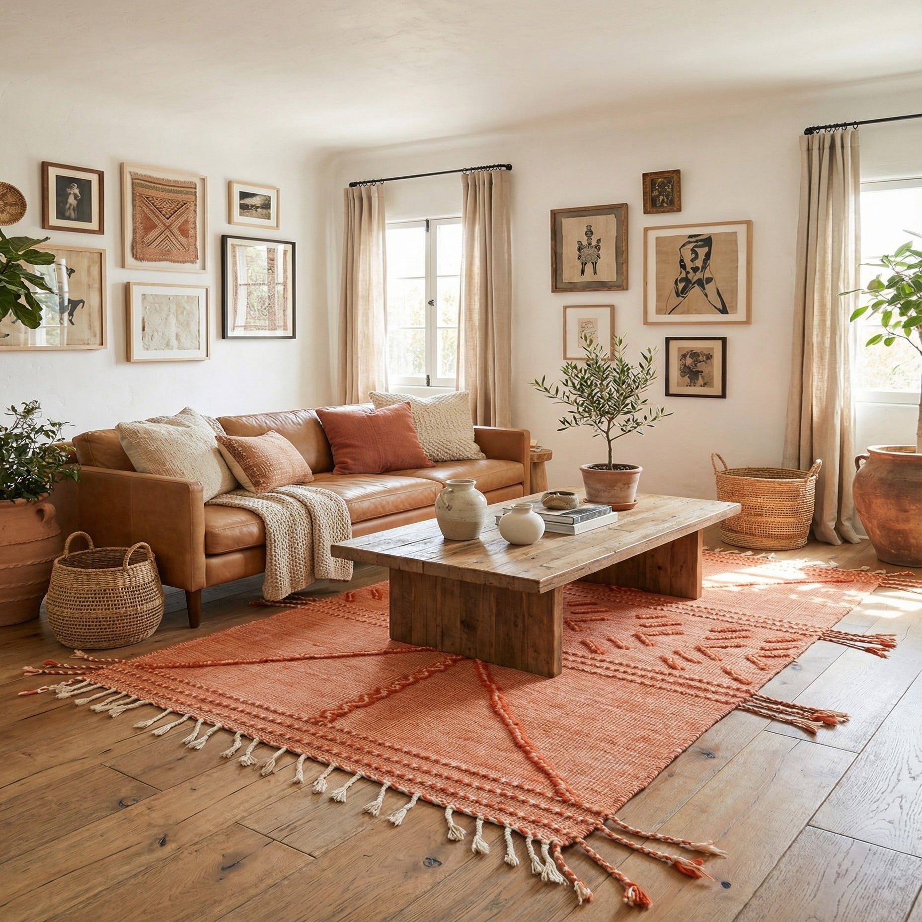 Primary color is Orange. Colors in this rug include: Orange, Ivory.