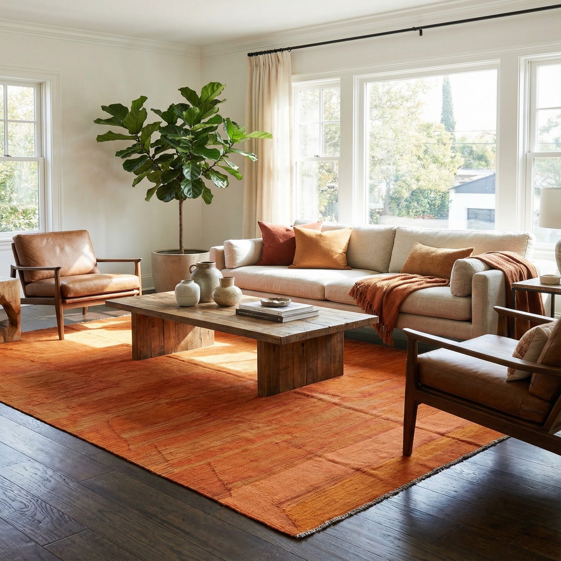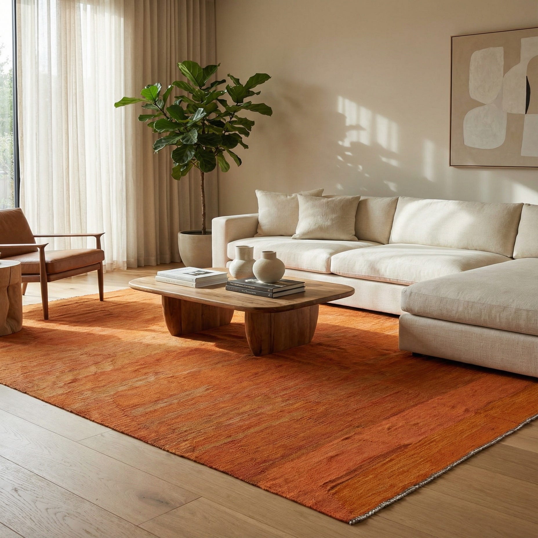 Primary color is Orange. Colors in this rug include: Orange, Beige.