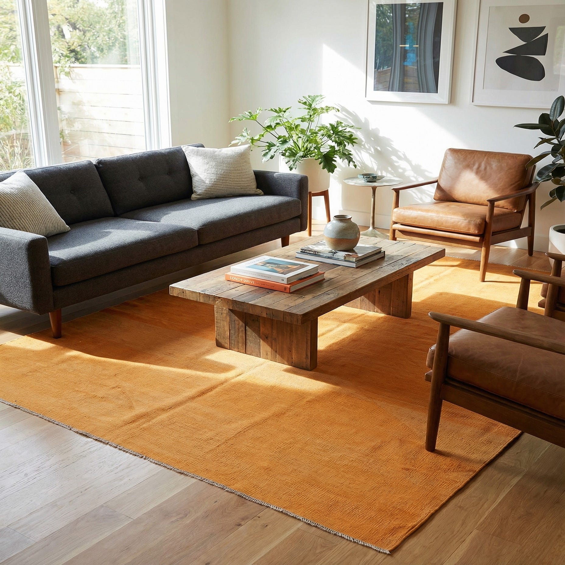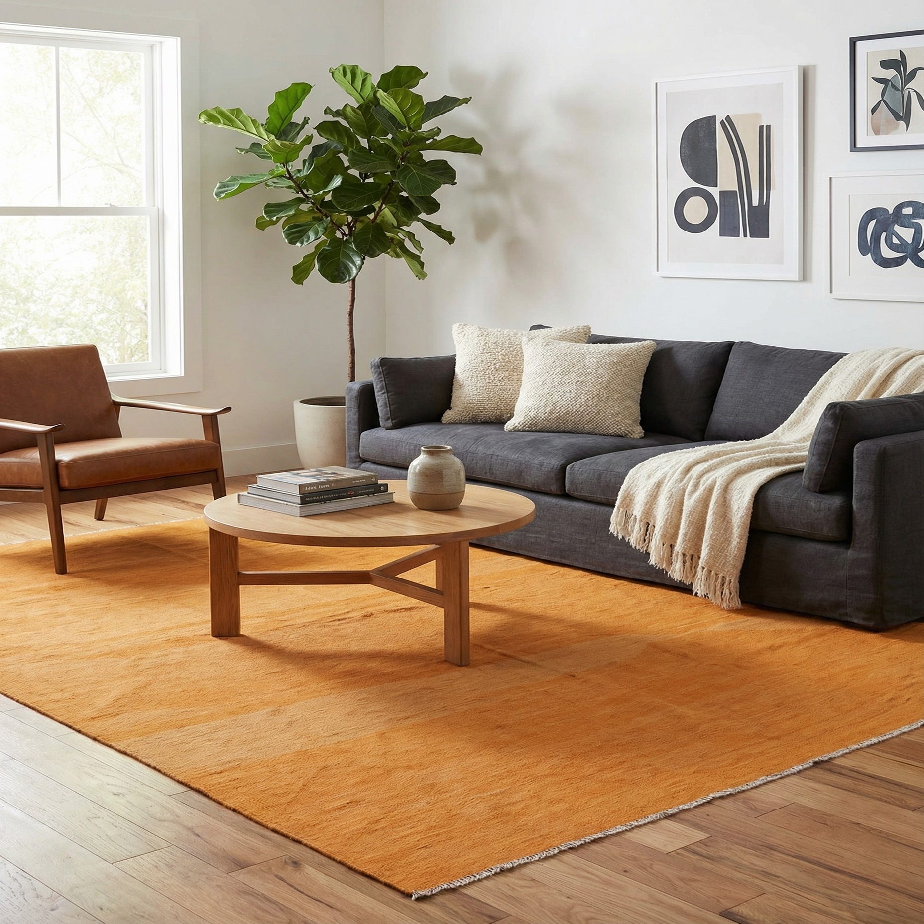 Primary color is Orange. Colors in this rug include: Orange, Beige.