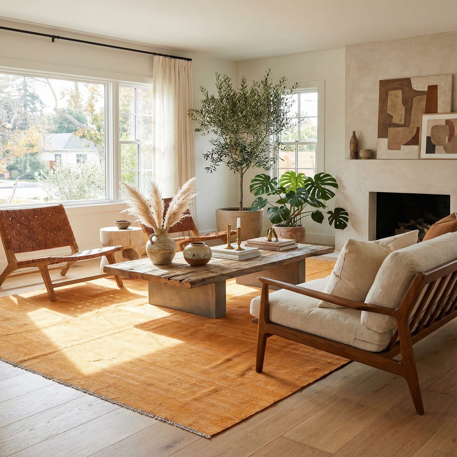 Primary color is Orange. Colors in this rug include: Orange, Beige.