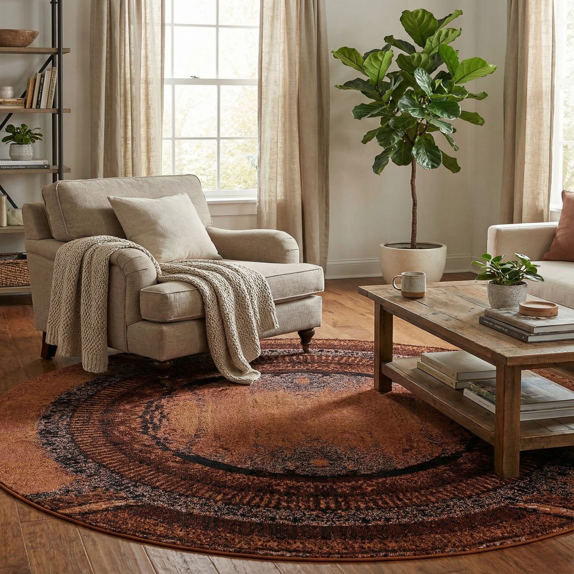 Primary image 8' x 8'  Washable Casablanca Round Rug