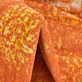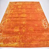 Primary color is Orange. Colors in this rug include: Orange, Ivory, Yellow.