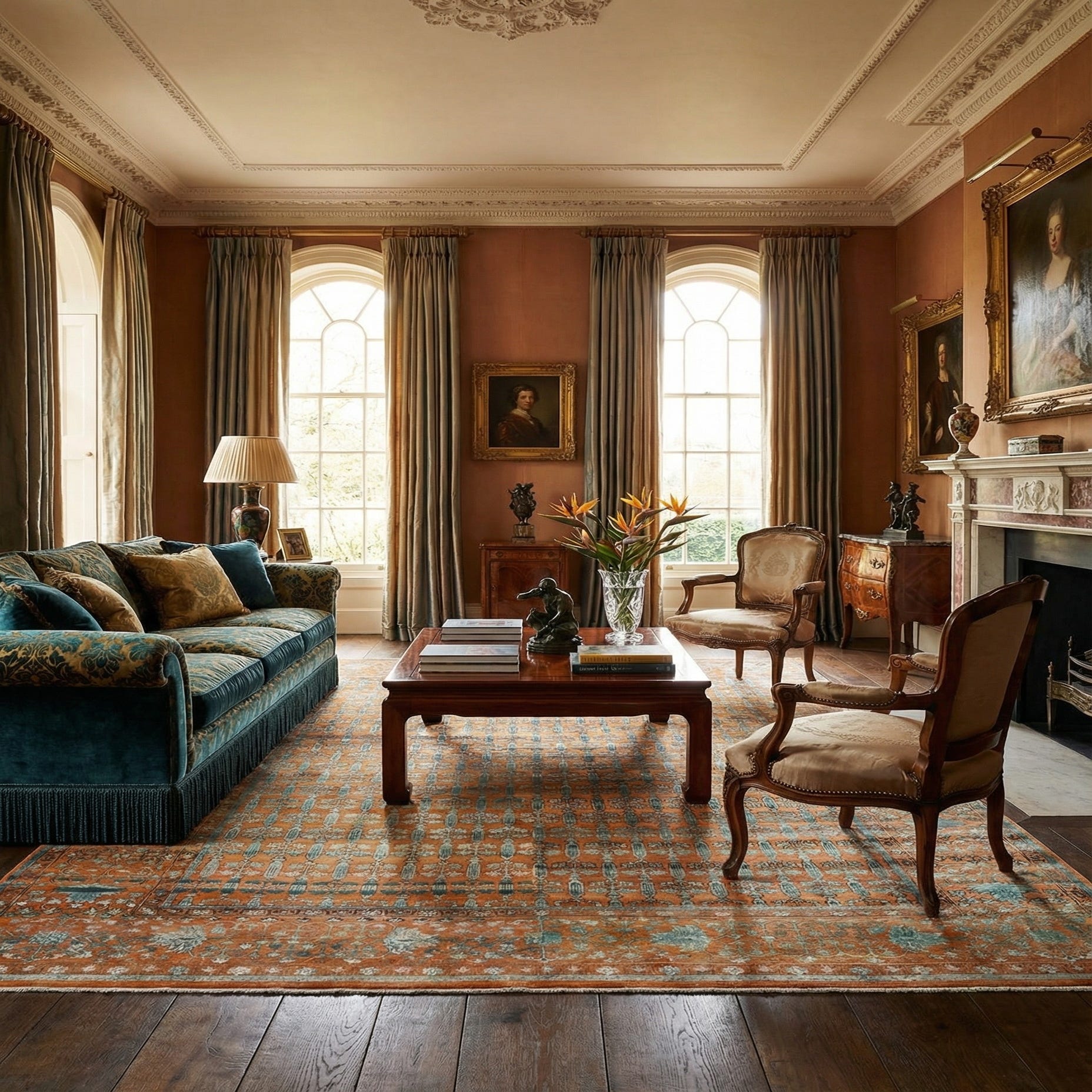 Primary color is Orange. Colors in this rug include: Orange, Language: en