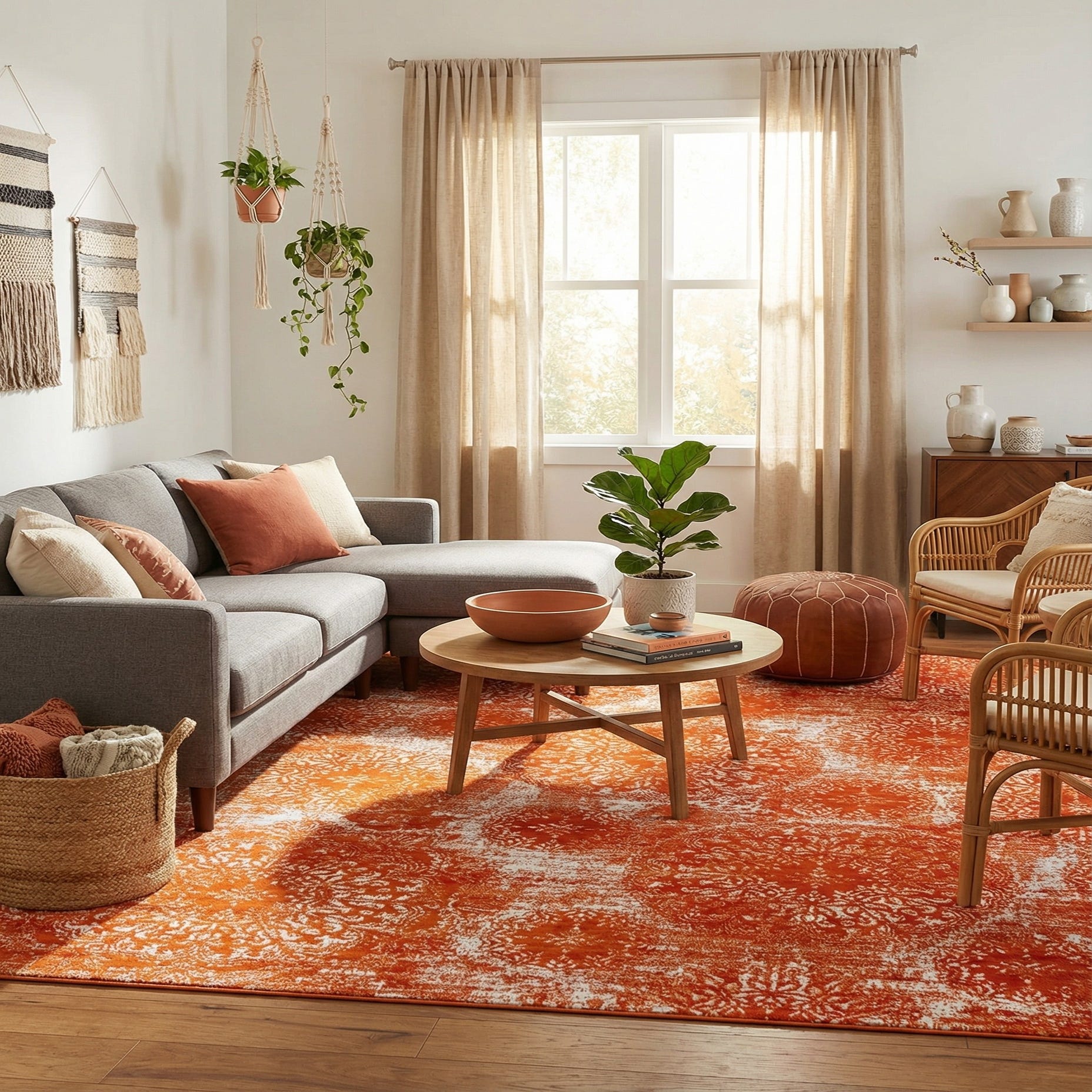 Primary color is Orange. Colors in this rug include: Orange, Ivory.