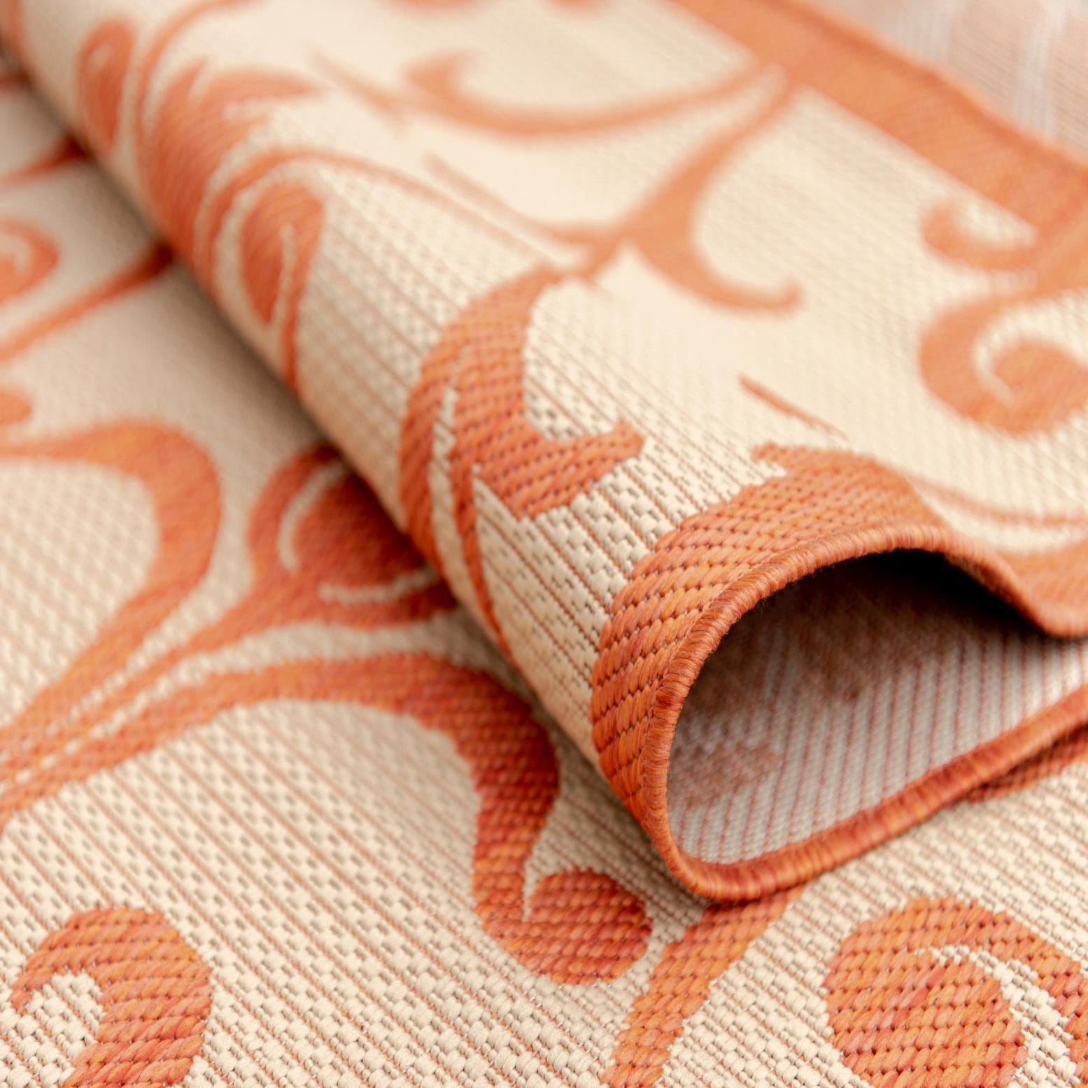 Primary color is Orange. Colors in this rug include: Orange, Beige, Terracotta.