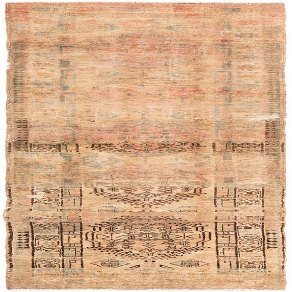 This Persian Ultra Vintage rug is an antique Persian Rug that has been washed, over-dyed, and then shaved down to a low pile. Look at the detail pictures to fully appreciate the uniqueness of this piece.