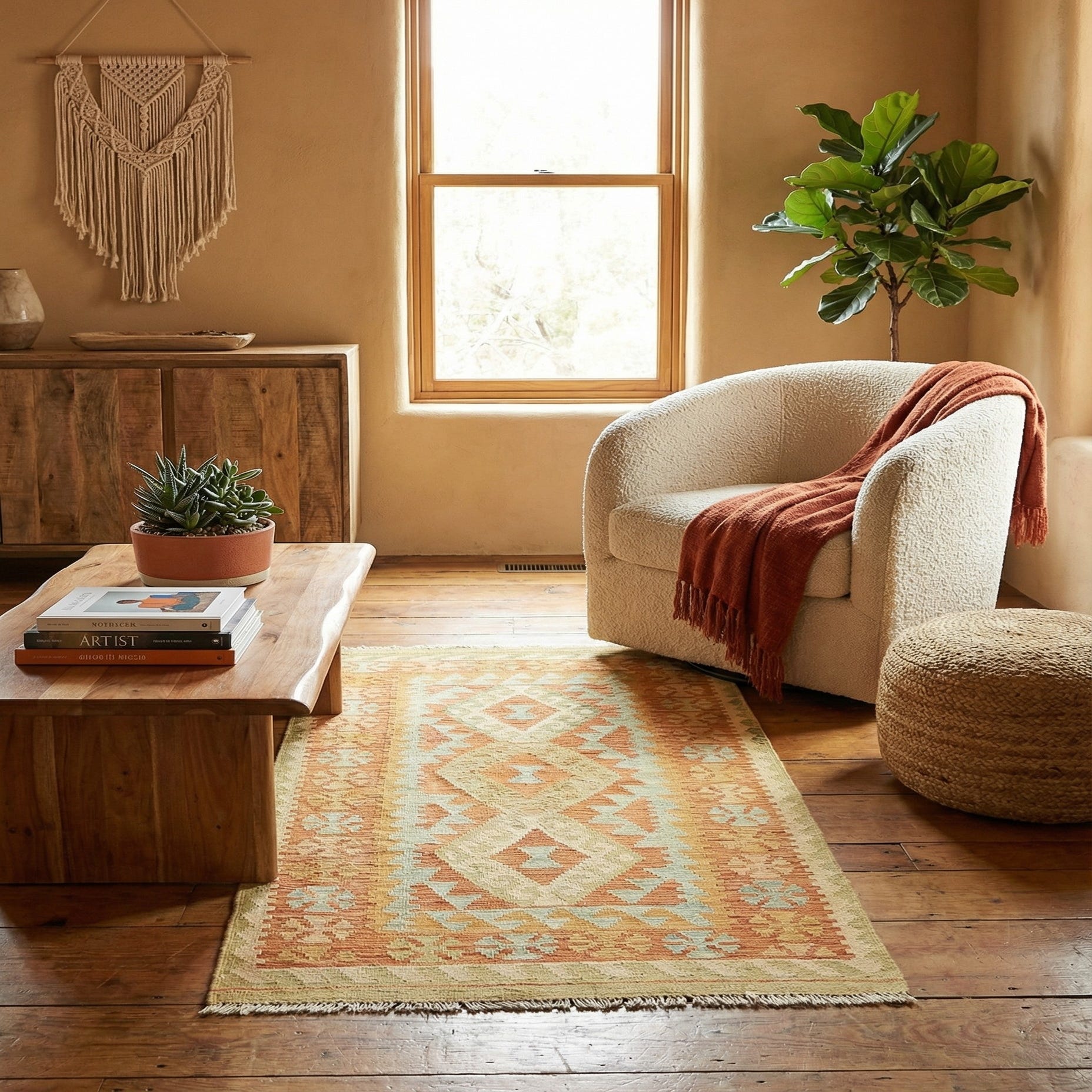 2' 6 x 4' 6 Hand Woven Kilim Waziri Wool Rug