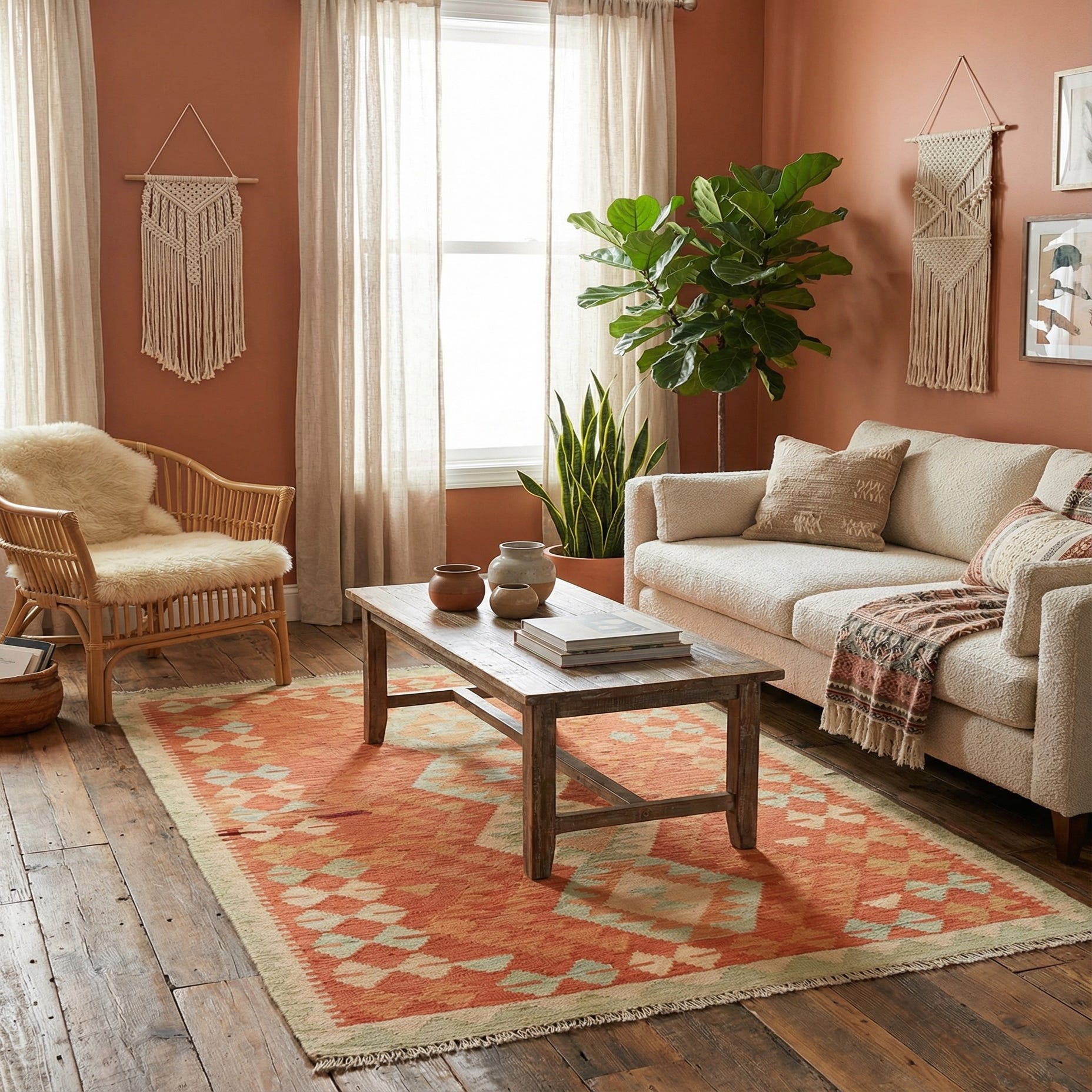 2' 10 x 4' 6 Hand Woven Kilim Waziri Wool Rug