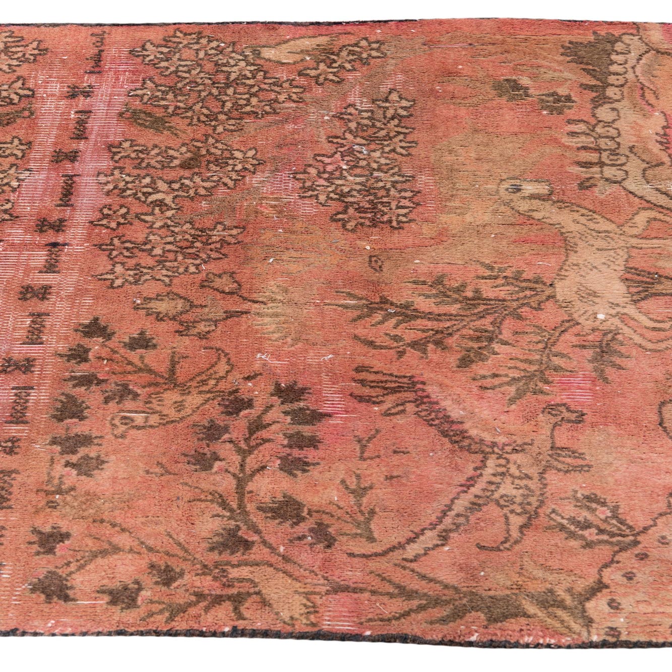 This Persian Ultra Vintage rug is an antique Persian Rug that has been washed, over-dyed, and then shaved down to a low pile. Look at the detail pictures to fully appreciate the uniqueness of this piece.