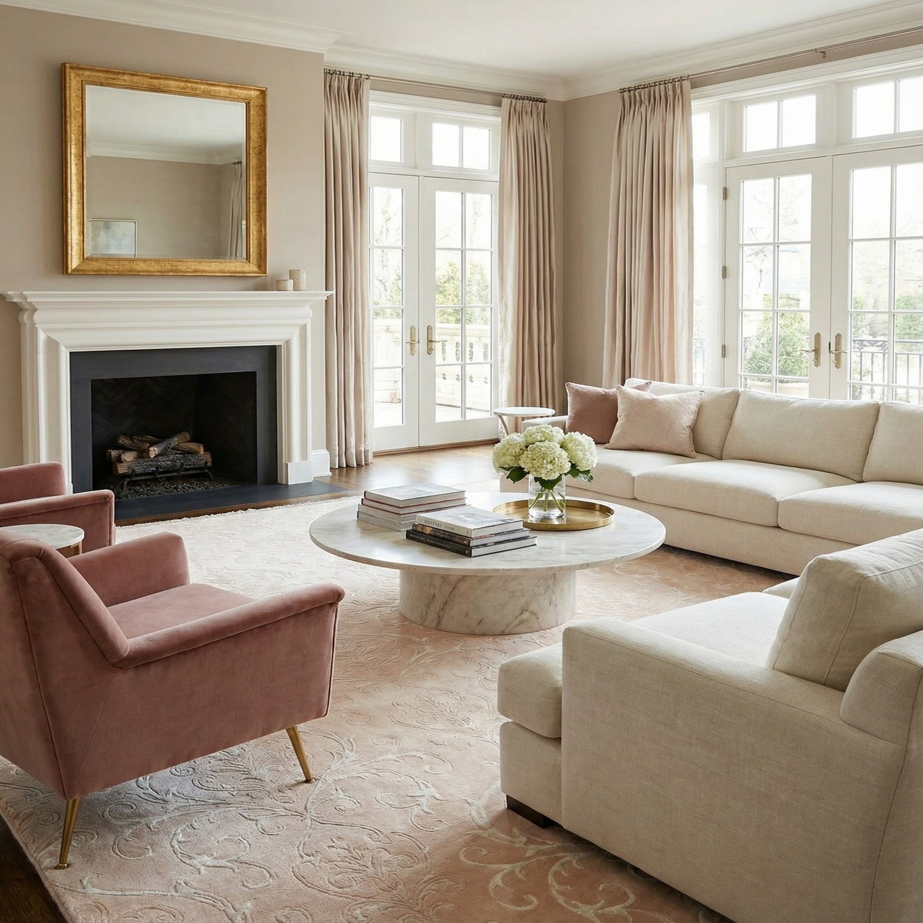 Primary color is Peach. Colors in this rug include: Peach, Ivory.