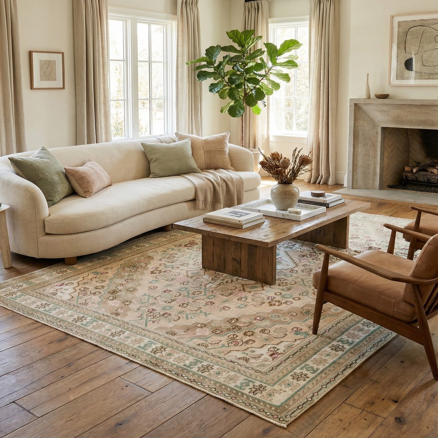 6' 8 x 9' 6 Hand Knotted Ultra Vintage Persian Wool Rug