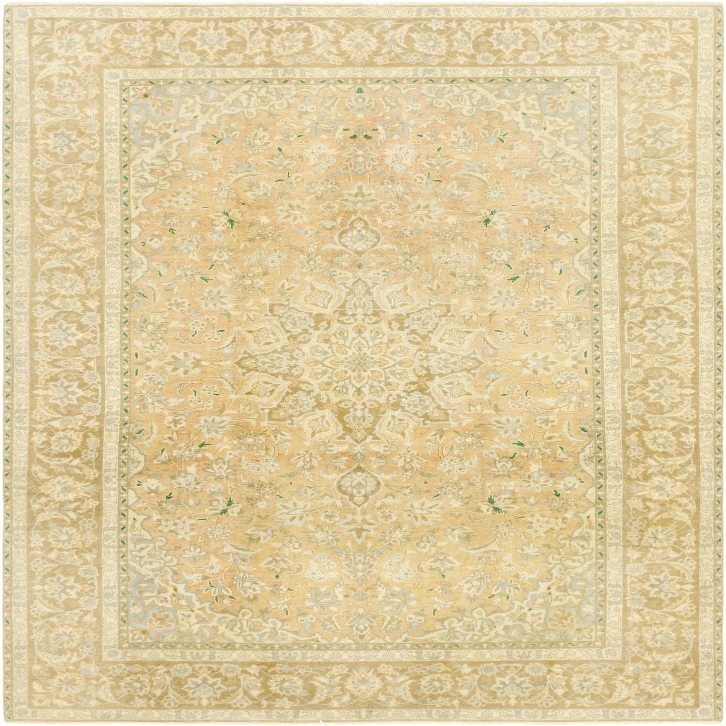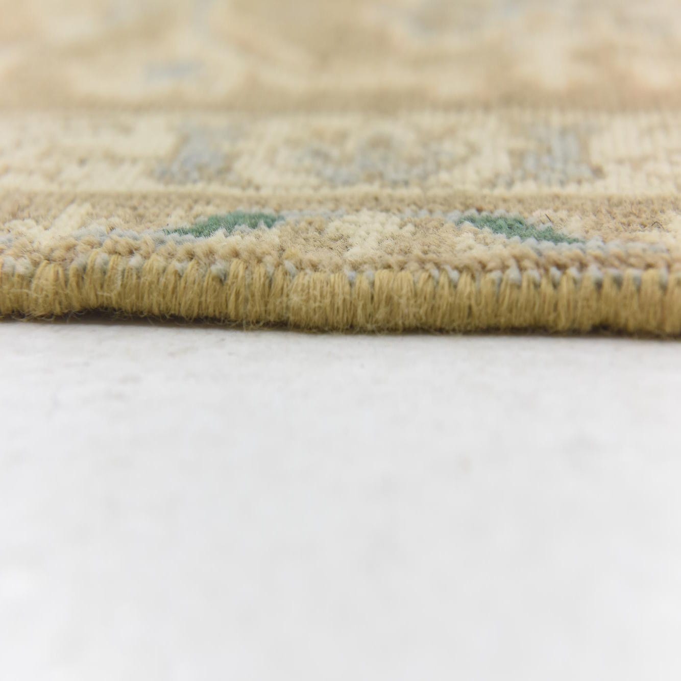 Primary color is Peach. Colors in this rug include: Peach, Beige, Blue, Green, Light Blue, Light Brown.