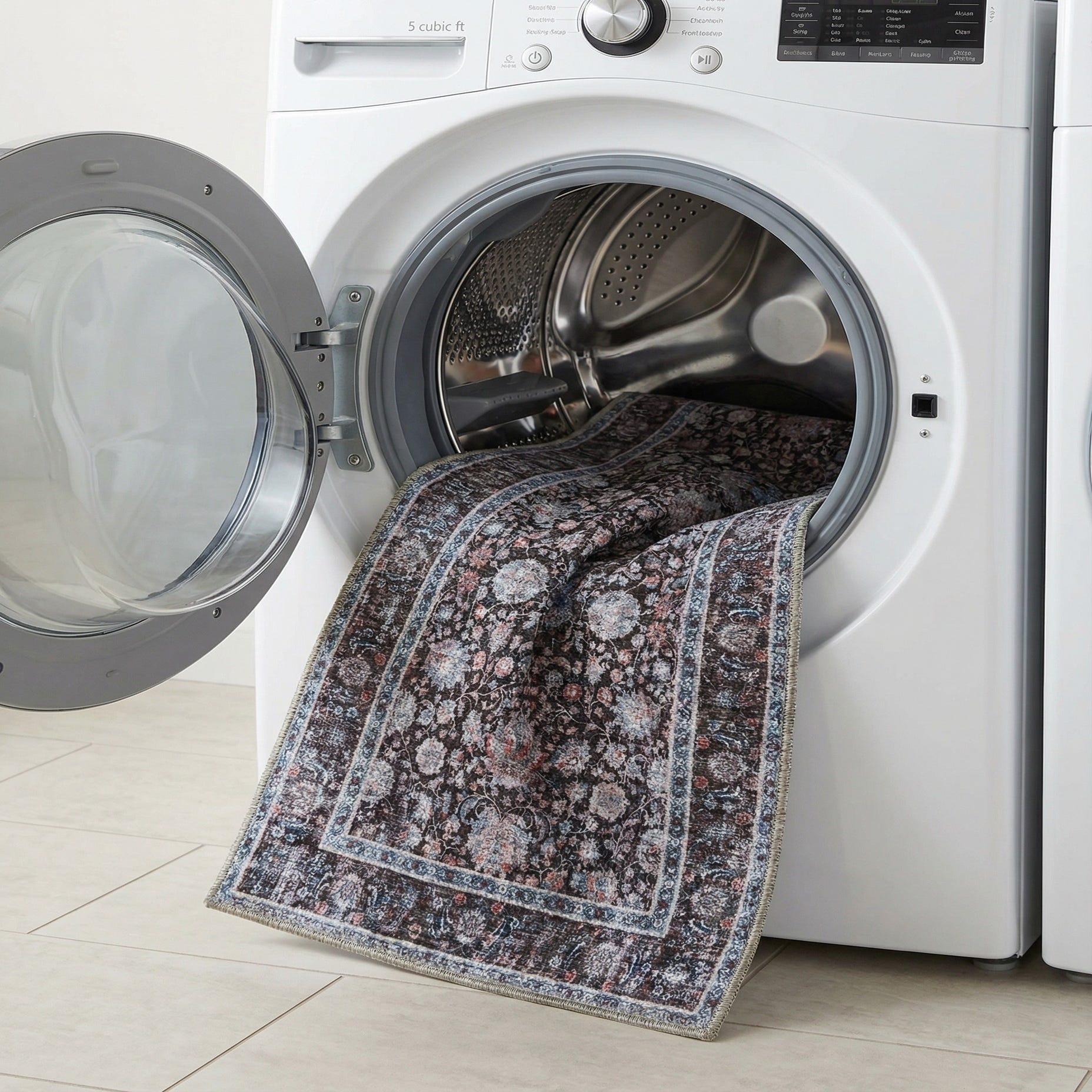 Primary color is Pecan Brown. Colors in this rug include: Pecan Brown, Beige, Blue, Brown, Ivory, Navy Blue, Red.