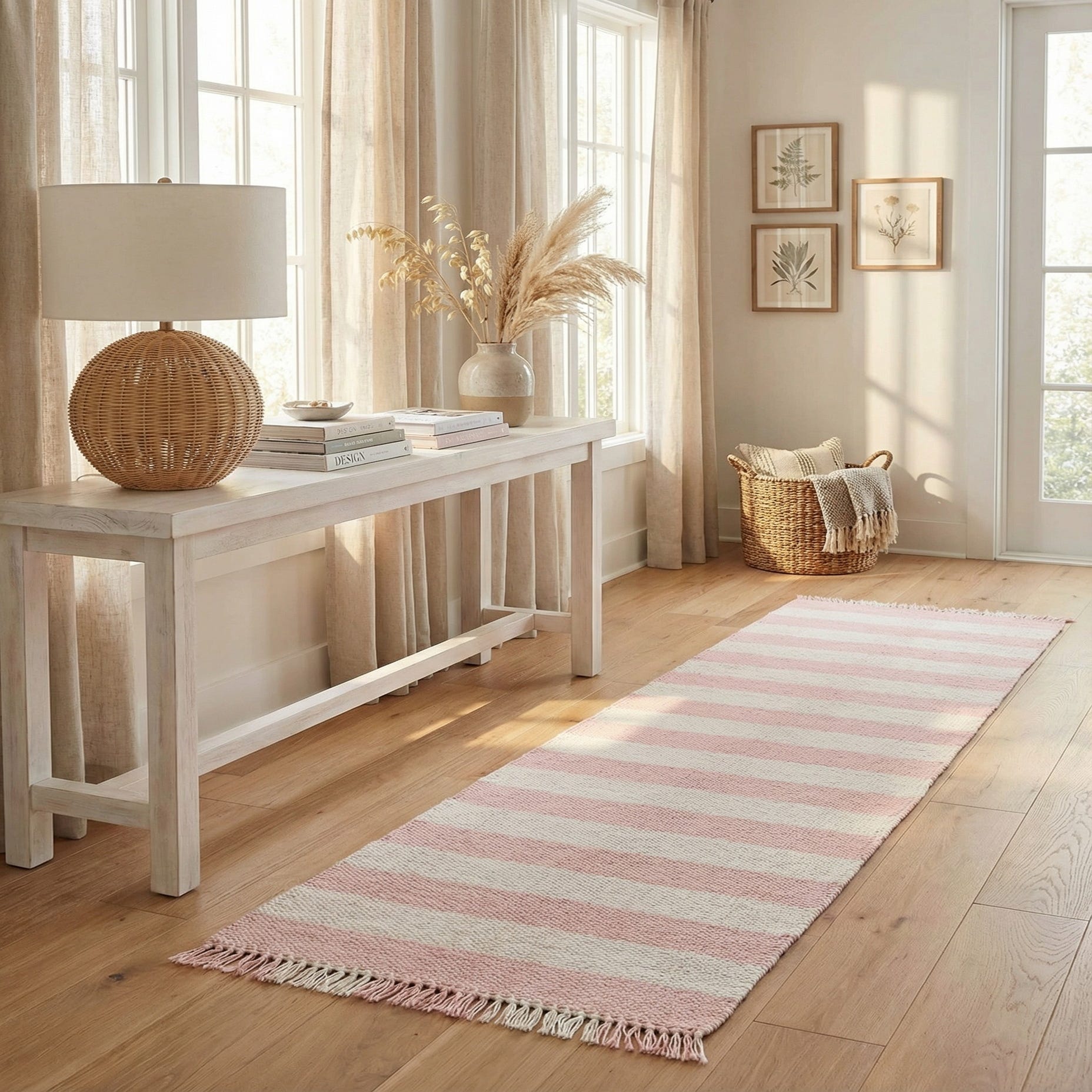 Primary color is Pink. Colors in this rug include: Pink, Ivory.